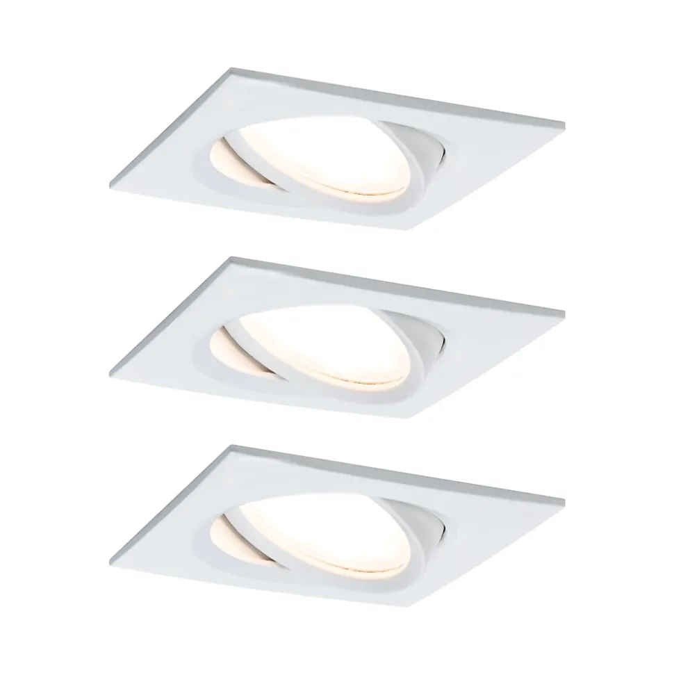 Les spots encastrés Nova Plus carrés en (kit de 3) en Blanc dépoli avec LED-Coin remplaçable, conviennent aussi bien à l’équipement de nouvelles installations qu’au remplacement d’équipements existants. De forme particulièrement plate, ils s’intègrent dans les plafonds disposant d’un espace creux de 30 mm seulement. Grâce à un raccordement par clips de fixation rapides, les luminaires individuels sont simples et rapides à monter. Leur variateur d’intensité permet un ajustement individuel de la luminosité offrant deux effets majeurs : vous jouissez d’une lumière de travail blanc chaud tout en baignant dans une ambiance cocooning. Grâce à sa capacité de pivotement, le spot peut être orienté individuellement.