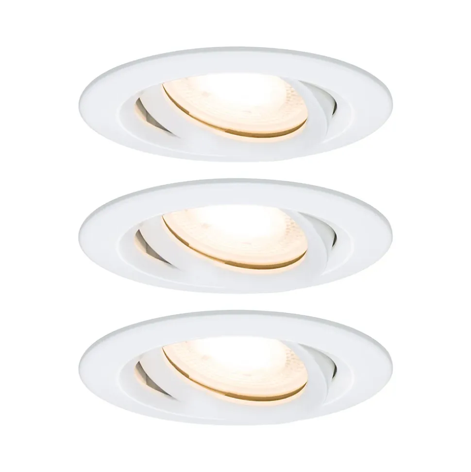 Le spot encastré Nova Plus rond (kit de 3) en Blanc dépoli avec ampoule GU10 remplaçable convient aussi bien à l’équipement de nouvelles installations qu’au remplacement d’équipements existants. Ils s’intègrent dans les plafonds disposant d’un espace creux de 75 mm seulement. La fixation simple par ressorts de retenue laisse le plafond intact même après plusieurs montages et démontages. Leur variateur d’intensité permet un ajustement individuel de la luminosité offrant deux effets majeurs : vous jouissez d’une lumière de travail blanc chaud tout en baignant dans une ambiance cocooning. Avec la protection IP65, le luminaire est spécifiquement préservé de la pénétration des jets d’eau et convient donc parfaitement pour les locaux humides ou l’extérieur.