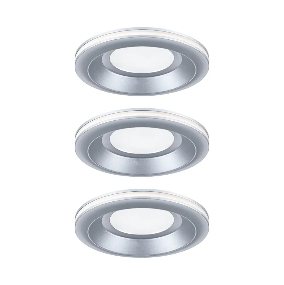 Le kit de spots encastrés Sormus (kit de 3) en Chrome mat est la solution idéale pour créer une ambiance lumineuse dans la salle de bains, où la fonctionnalité s’allie au design moderne. Avec la protection IP65, les luminaires sont préservés de la pénétration des jets d’eau et conviennent donc parfaitement pour les locaux humides ou l’extérieur. La diffusion lumineuse extra-large assure un éclairage lumineux qui, avec une température de couleur de 3000 K, plonge la pièce dans une couleur de feu blanc chaud. L’un des points forts des spots encastrés est sa commande d’éclairage flexible, qui permet de choisir entre un éclairage lumineux de la salle de bains et des accents lumineux décoratifs. En appuyant plusieurs fois sur un interrupteur conventionnel, vous pouvez choisir entre un éclairage principale, un anneau décoratif éclairé ou une combinaison des deux. Les spots encastrés Sormus présentent une profondeur d’encastrement d’à peine 55 mm, ce qui permet de les installer dans des faux plafonds peu profonds. Le boîtier de raccordement pratique permet un raccordement direct en 230 V et permet de raccorder les luminaires entre eux très facilement et sans restriction.