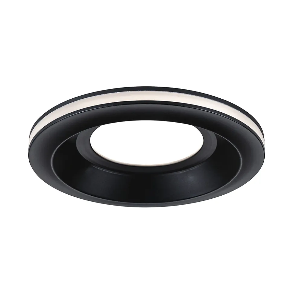Le kit de spots encastrés Sormus en Noir est la solution idéale pour créer une ambiance lumineuse dans la salle de bains, où la fonctionnalité s’allie au design moderne. Avec la protection IP65, le luminaire est préservé de la pénétration des jets d’eau et convient donc parfaitement pour les locaux humides ou l’extérieur. La diffusion lumineuse extra-large assure un éclairage lumineux qui, avec une température de couleur de 3000 K, plonge la pièce dans une couleur de feu blanc chaud. L’un des points forts du spot encastré Sormus est sa commande d’éclairage flexible, qui permet de choisir entre un éclairage lumineux de la salle de bains et des accents lumineux décoratifs. En appuyant plusieurs fois sur un interrupteur conventionnel, vous pouvez choisir entre un éclairage principale, un anneau décoratif éclairé ou une combinaison des deux. Le spot encastré Sormus présente une profondeur d’encastrement d’à peine 55 mm, ce qui permet de l’installer dans des faux plafonds peu profonds. Le boîtier de raccordement pratique permet un raccordement direct en 230 V et permet de raccorder les luminaires entre eux très facilement et sans restriction.