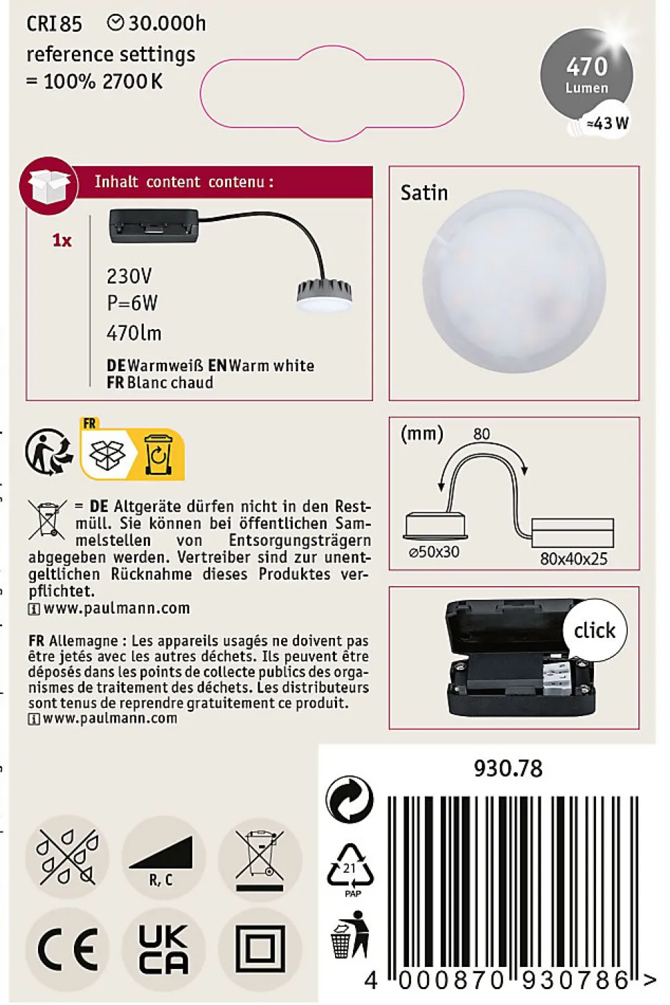 Module LED avec boîtier de connexion, incl. double clips de fixation rapide|Pour raccordement direct au secteur 230V|Intensité variable|Température de couleur: 2700K – Blanc chaud|Technique LED efficace