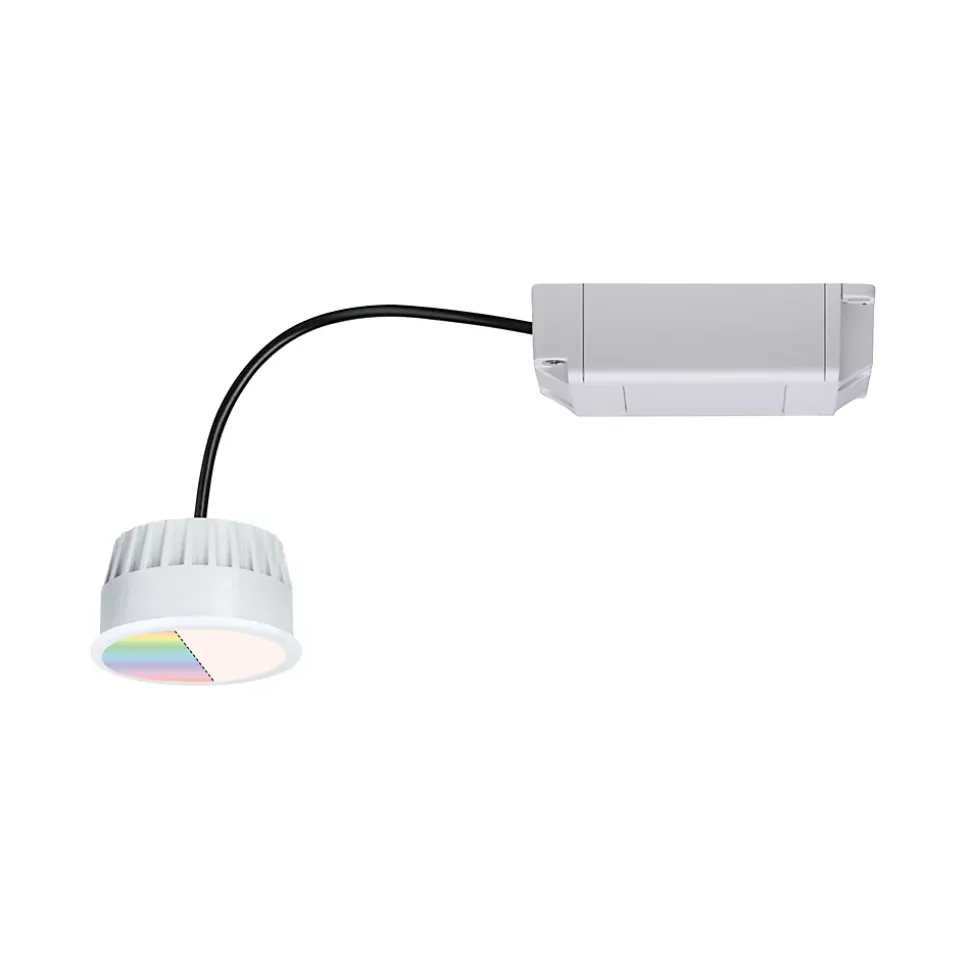 Contrôlable par la télécommande Smart Home Zigbee|Peut être utilisé avec les passerelles pour maisons intelligentes qui ont une interface Zigbee|Très plat : le montage peut s’effectuer même avec une faible profondeur de la cavité de seulement 30 mm.|Pour raccordement direct au secteur 230V|Technologie LED performante|Gradable en continu|Changement de couleur multicolore RGBW|Température de couleur: 2700K Blanc chaud – 6500K – Lumière du jour