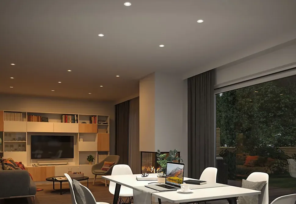 Les innovants Coins intelligents peuvent également être combinés avec les installations d’éclairage existantes. Si des spots encastrés d’un diamètre de 51 mm sont déjà installés, il est très facile de passer aux modules LED intelligents. L’ancienne ampoule est retirée, le Slim Coin est branché et implanté grâce aux clips de fixation rapide, voilà c’est fini ! Le luminaire est compatible Zigbee 3.0. ZigBee 3.0 est un protocole de transmission radio qui met en réseau les appareils de différents fabricants. Ainsi, les luminaires peuvent être pilotés individuellement ou collectivement via une application, une télécommande ou une commande vocale : qu’il s’agisse d’une lumière dorée et chaude (2200 K) ou d’un blanc lumière du jour sobre et lumineux (6500 K), la fonction Tunable permet de régler en continu la température de couleur de la lumière en fonction des besoins. Leur fonction de variation d’intensité en continu permet un ajustement individuel de la luminosité offrant deux effets majeurs : vous jouissez d’une lumière de travail claire tout en baignant dans une ambiance cocooning. Le montage est particulièrement simple et efficace grâce aux Coins chaînables et interchangeables, à la faible profondeur d’encastrement de seulement 29 mm et au raccordement direct en 230 V.