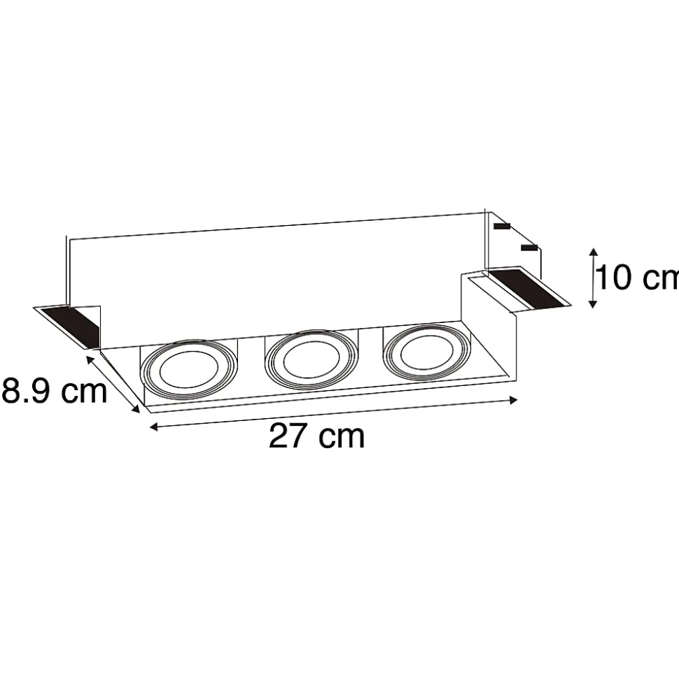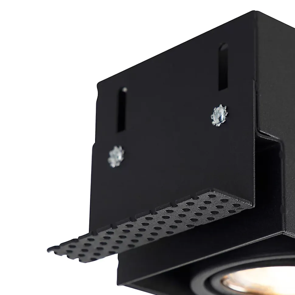 Notre Oneon Trimless est le spot encastré idéal. L’appareil est sans bordure, ce qui signifie qu’il n’y a pas de bord extérieur autour de l’appareil et que vous pouvez ainsi l’installer parfaitement et sans bordure dans votre plafond. Le plafond semble ainsi se prolonger et l’éclairage devient partie intégrante de toute la surface. Le spot mesure 26,9 cm de long et 8,8 cm de large. Vous montez le cadre sur le placoplâtre. Il est réglable et vous pouvez le régler au préalable à l’épaisseur correcte de la couche de plâtre afin que le bord soit au niveau du plâtre. Le cadre peut également être monté jusqu’à 3 cm du plafond. Attention ! La hauteur du cadre dissimulé est de 10 cm. Une fois cette opération effectuée, vous pouvez très facilement clipser l’appareil en place, puis les trois ampoules GU10, chacune d’une puissance maximale de 50 watts (à commander séparément). Les trois sources lumineuses peuvent être inclinées individuellement. Vous pouvez ainsi choisir la direction du faisceau lumineux. Si vous souhaitez créer une ambiance cosy en soirée, vous pouvez également atténuer ces spots à l’aide d’un variateur externe (non inclus). Ce spot encastré est disponible en noir, ce qui crée un beau contraste entre le plafond et l’éclairage. Un spot idéal à utiliser comme éclairage principal dans le salon, la chambre à coucher ou la cuisine !