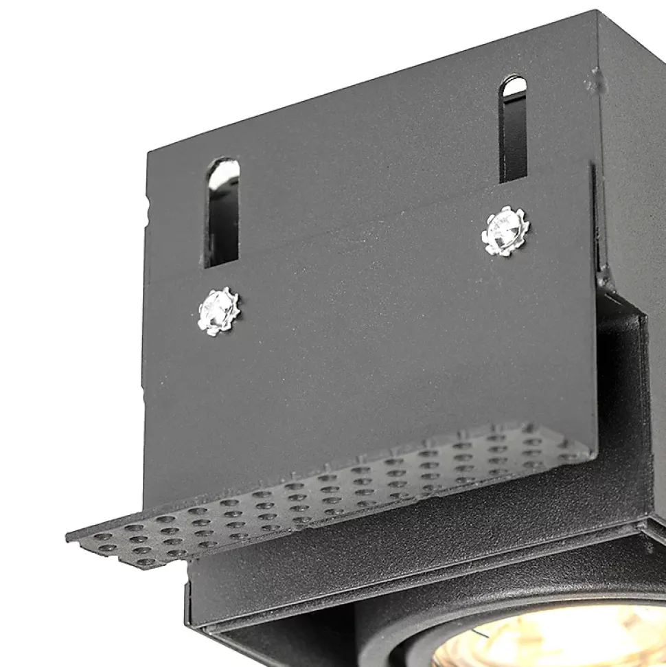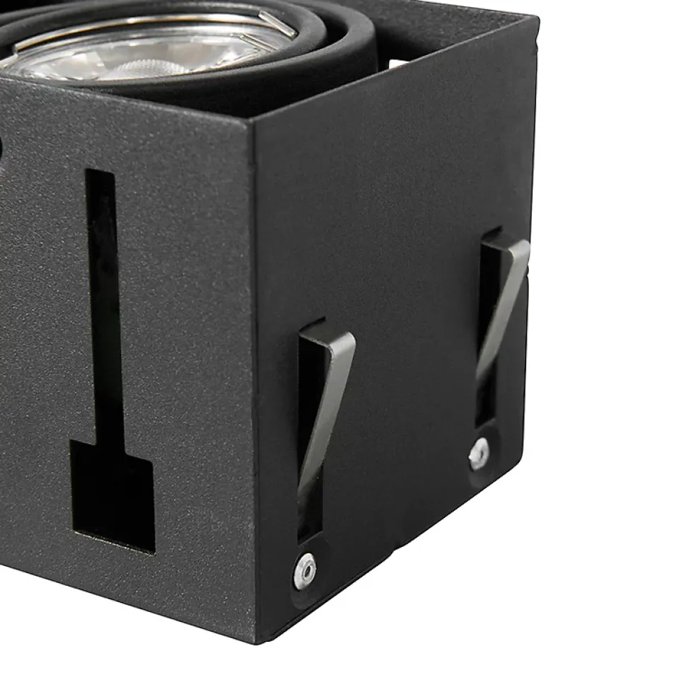 Ce Oneon 2 Trimless est le spot encastré idéal. Le luminaire est sans cadre, ce qui signifie qu’il n’y a pas de bord extérieur autour du luminaire, vous pouvez donc l’encastrer parfaitement et en toute transparence dans votre plafond. Le plafond semble ainsi se poursuivre et l’éclairage devient partie intégrante de l’ensemble. Le spot mesure 18,8 cm de long et 8,8 cm de large. Vous fixez le cadre au plâtre. Il est réglable et peut être préréglé à l’épaisseur correcte de la couche de plâtre afin que le bord soit affleurant au plâtre. Le cadre peut également être monté jusqu’à 3 cm à l’extérieur du plafond. Attention ! La hauteur du cadre du plâtre est de 10 cm. Une fois cette opération effectuée, il vous suffit d’enclencher le luminaire, puis les deux ampoules GU10 d’une puissance maximale de 50 watts (à commander séparément). Les deux sources lumineuses peuvent être inclinées séparément, ce qui vous permet de déterminer la direction du faisceau lumineux. Et si vous souhaitez créer une ambiance cosy le soir, vous pouvez également atténuer ces spots à l’aide d’un variateur externe (non inclus). Ce spot encastré est disponible en noir, ce qui crée un beau contraste entre le plafond et l’éclairage. Un spot encastré idéal pour l’éclairage de base dans la cuisine, le salon ou la chambre à coucher.