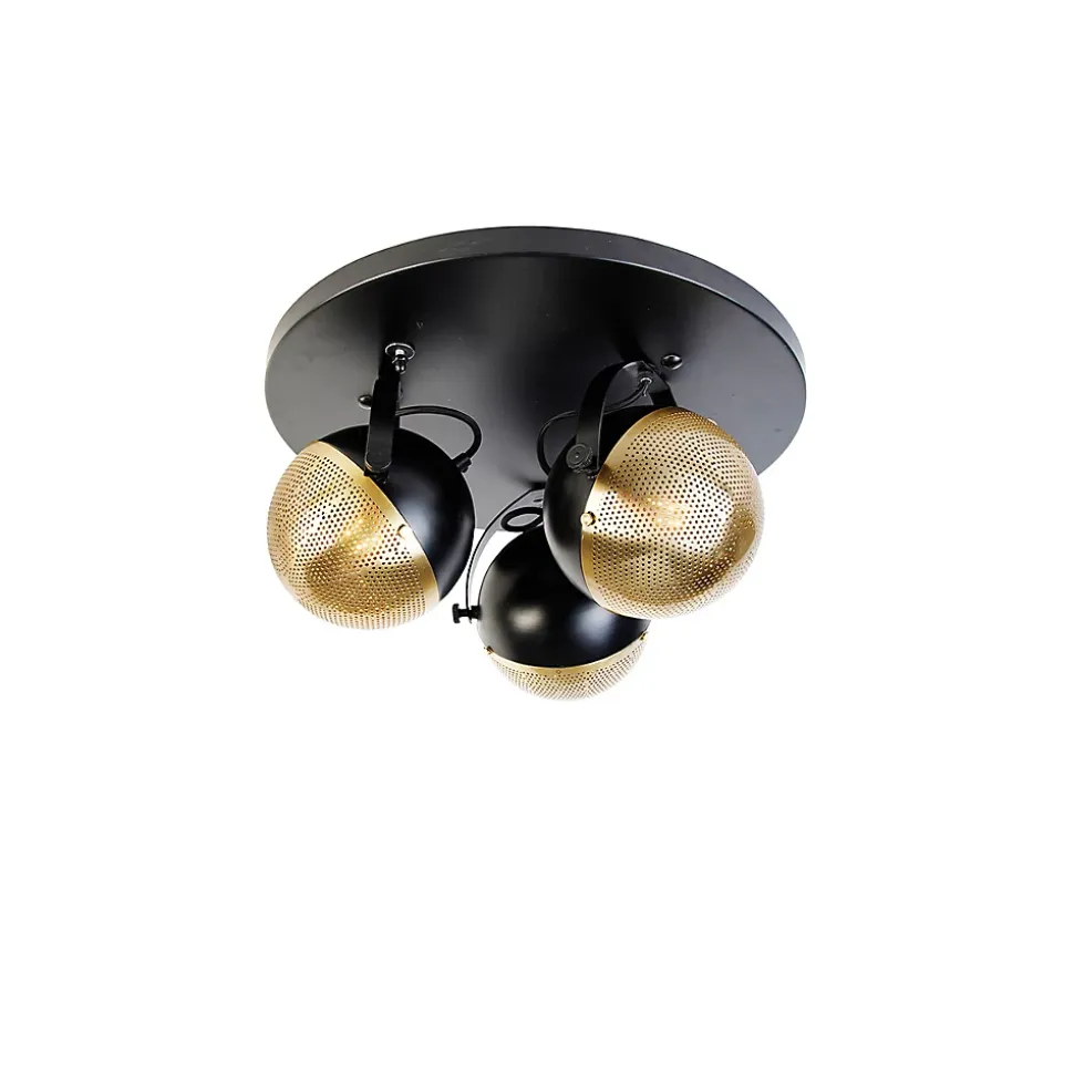 Mettez une pièce en lumière avec ce spot industriel. De la cuisine à la chambre à coucher : cette lampe sera du plus bel effet dans de nombreux endroits. Le Haicha a un diamètre de 51 cm et une hauteur de 26 cm. La plaque de montage a un diamètre de 51 cm et une hauteur de 3 cm. La lampe est livrée avec trois abat-jour, chacun ayant un diamètre de 18 cm. Le Haicha est fait d’acier et est fini en or/laiton avec du noir. La lampe est dimmable (variateur non inclus) et vous devez ajouter vous-même trois ampoules E27 d’une puissance maximale de 25 watts. Laissez briller et intégrez le Haicha à votre maison !