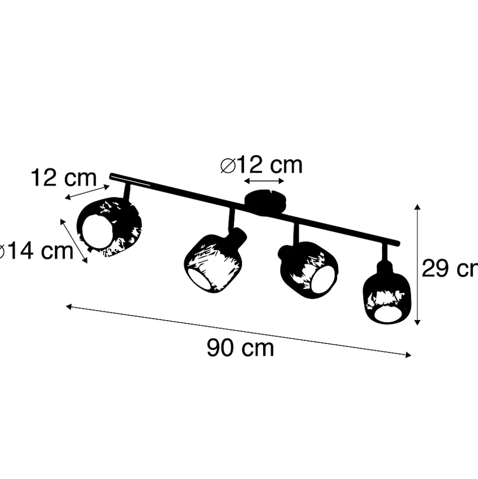 Vous recherchez un spot pour votre salon, salle à manger ou chambre à coucher ? Alors le Bliss Mesh est fait pour vous ! Les quatre spots peuvent être orientés séparément, vous permettant ainsi de choisir où la lumière éclaire. Super pratique ! Le Bliss Mesh est en acier et arbore une finition noire avec des touches dorées. Il mesure 29 cm de haut, 90 cm de long et 18 cm de large. La plaque de montage a un diamètre de 12 cm et une épaisseur de 2,5 cm. Chaque abat-jour doré a un diamètre de 14 cm et une hauteur de 12 cm. Complétez le spot avec 4 ampoules, chacune avec un culot E27 de 40W maximum. N’oubliez pas de les commander séparément. Les spots peuvent être atténués à l’aide d’un variateur externe, qui n’est toutefois pas inclus. Complétez votre intérieur avec le Bliss Mesh.
