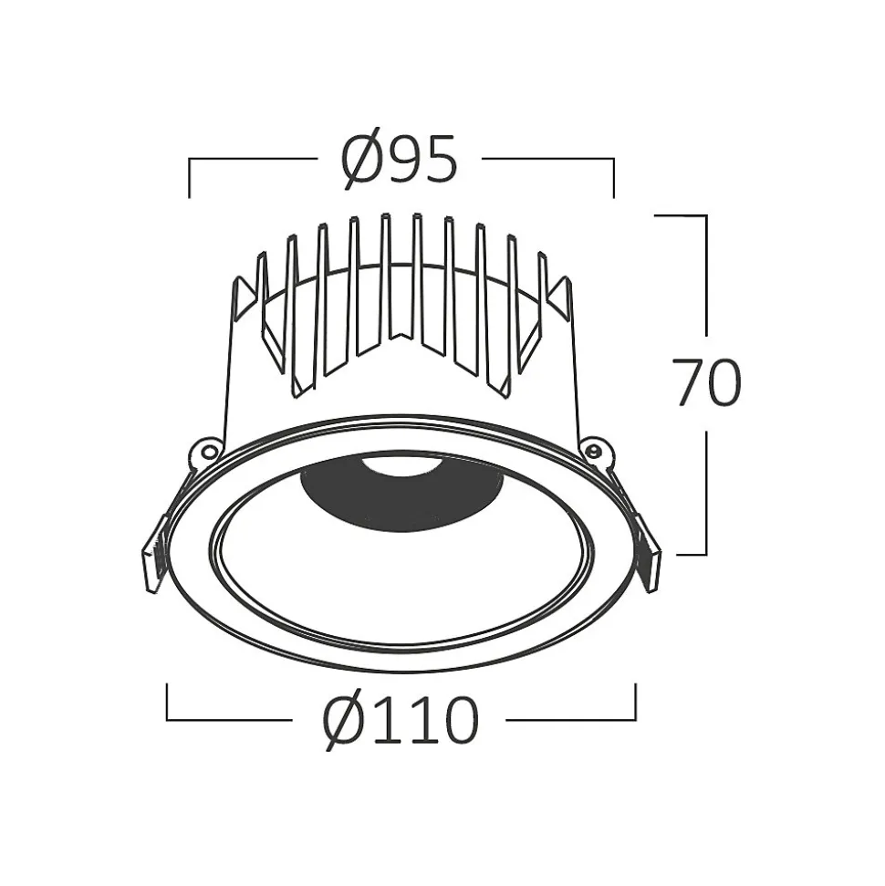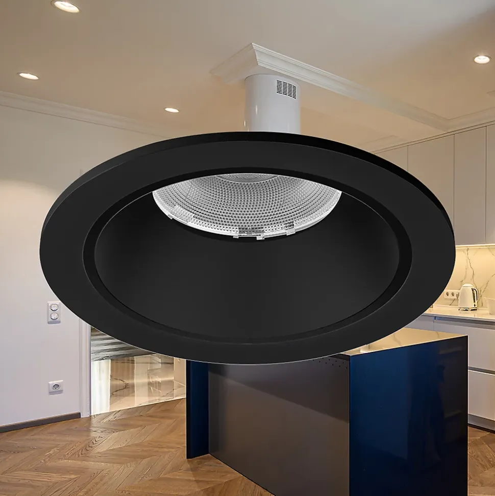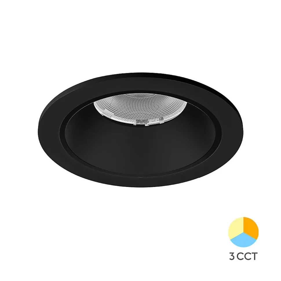 Offrez une touche d’élégance avec ce spot LED encastrable Braytron noir de 20W. Son design moderne, avec des finitions entièrement noires et des clips rouges robustes, en fait un choix idéal pour les intérieurs contemporains. Polyvalent grâce à sa température de couleur réglable (3000K, 4000K, 6500K), il s’adapte parfaitement aux différentes ambiances. Son angle d’éclairage de 36° permet une mise en lumière précise et ciblée. Caractéristiques techniques Type : Spot LED encastrable Puissance : 20W Luminosité : 2200 lumens Température de couleur : 3000K, 4000K, 6500K (réglable 3-en-1) Indice de protection : IP20 (usage intérieur uniquement) Angle d’éclairage : 36° Classe énergétique : E Classe de protection : II Matériau : Aluminium durable pour une meilleure dissipation thermique Finition : Noir mat Dimensions : Diamètre 110 mm, Hauteur 70 mm Diamètre de coupe au plafond : 95 mm Durée de vie : 20 000 heures Non dimmable : Éclairage constant sans variation Avantages Puissance efficace : Profitez d’un éclairage performant de 2200 lumens pour seulement 20W. Design contemporain : Sa finition noir mat apporte une touche chic et élégante à votre intérieur. Polyvalence lumineuse : Ajustez facilement la température de couleur pour une lumière adaptée à toutes vos pièces.