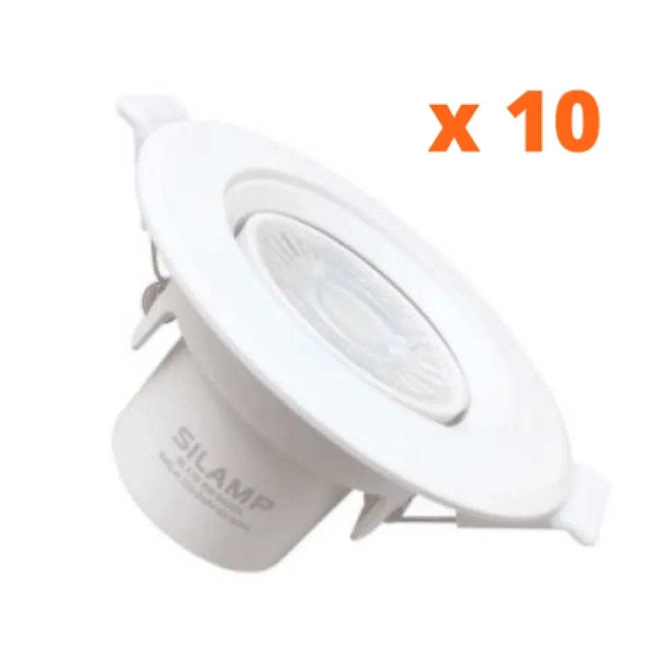 【Spot LED Encastrable Orientable Rond Blanc 8W (Pack de 10)】 Découvrez notre pack de 10 Spots LED Encastrable Orientable Rond Blanc 8W, un produit polyvalent qui vous permet d’orienter le faisceau de lumière de 50° à 180° pour votre pièce.【Un éclairage puissant et économique】 D’une puissance de 8W, ce spot LED bénéficie d’une technologie dont la particularité est qu’elle propose une haute qualité d’éclairage avec une basse consommation d’énergie.【Un luminaire résistant】 L’aluminium et le plastique sont les deux matériaux qui constituent ce spot. Ils tolèrent une température entre -10 °c et 45°c. Ce spot est préférable en intérieur du fait de son indice de protection IP40 qui signifie qu’il est vulnérable à l’eau, mais qu’il résiste à des corps solides supérieur à 1mm.【Installation】 L’installation est très facile. Il vous suffit juste de vérifier au préalable les dimensions d’encastrement pour simplifier votre pose et d’effectuer le branchement. L’usage de ce spot est idéal pour des espaces intérieurs qui n’ont pas besoin d’une grande quantité de lumière telle que l’entrée, les couloirs ou bien encore les escaliers.【La qualité Silamp】 Silamp s’engage pour vous fournir des produits de qualité et garantis 2 ans, ainsi qu’un service client à l’écoute et réactif.