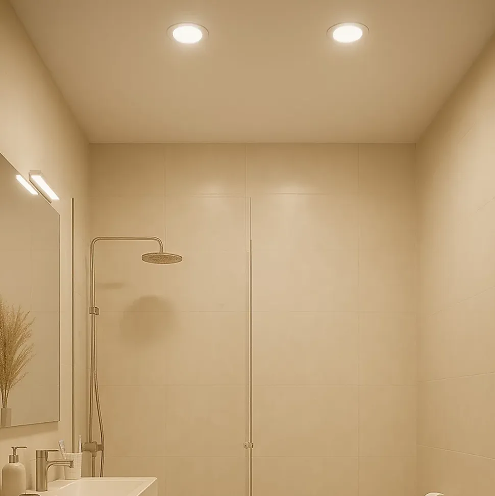 Spot LED Encastré Étanche 5 W CCT Sélectionnable – IP44Le spot LED encastré de 5 W est une solution polyvalente et efficace pour tout espace intérieur. Grâce à son indice de protection IP44, il est idéal pour les zones humides telles que les salles de bains et les cuisines, ainsi que pour les salons, chambres, couloirs et extérieurs couverts.L’installation est simple et sûre grâce aux ressorts et pattes avec protection en caoutchouc, garantissant un montage affleurant au plafond. À l’arrière, un sélecteur CCT permet de choisir entre trois températures de couleur selon vos préférences :Lumière chaude : 3000 KLumière neutre : 4000 KLumière froide : 6000 KFabriqué en polycarbonate blanc opale, il offre un éclairage uniforme et diffus avec un angle d’ouverture de 120° et un CRI >80 pour une excellente restitution des couleurs, proche de la lumière naturelle.La technologie DOB (Direct On Board) élimine le besoin de driver externe, améliore l’efficacité énergétique et supprime les scintillements (No Flicker), permettant une connexion directe 100-240 V AC.Caractéristiques techniques :Puissance : 5 WFlux lumineux : 400 lmTempérature de couleur : CCT sélectionnable (3000 K / 4000 K / 6000 K)Angle d’ouverture : 120°Indice de rendu des couleurs (CRI) : >80Protection : IP44 (résistant à l’humidité, non adapté aux jets d’eau directs)Dimensions : Ø92 x 38 mmDécoupe : Ø75-80 mmTension nominale : 100-240 V ACMatériau : polycarbonate blanc opaleInstallation : encastré, connexion directe, sans driver externe (DOB)Applications recommandées : salles de bains, cuisines, vestiaires, couloirs, salons, chambres et extérieurs couverts.
