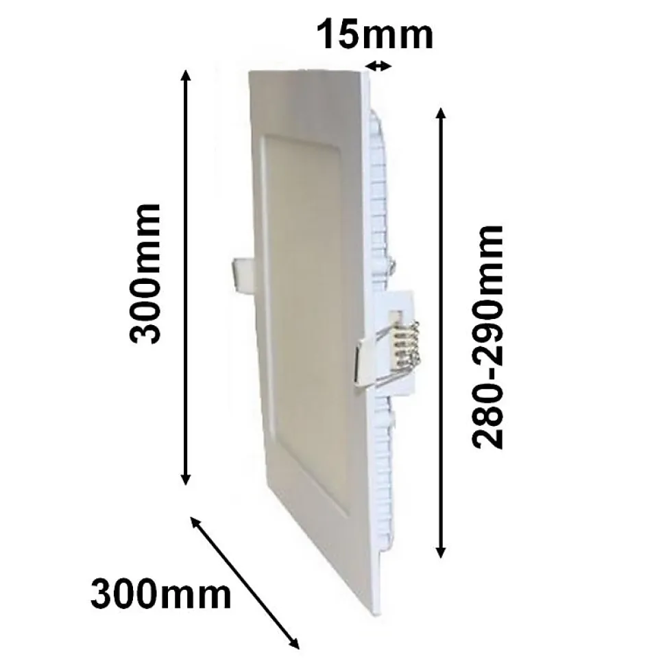 - À encastrer dans un trou à percer entre 270 à 290 mm (vérifiez la mesure exacte sur le produit ou dans la fiche technique), notre Downlight Dalle LED Extra Plate Carré BLANC 24W vous permettra d’installer un bel éclairage de plafond.