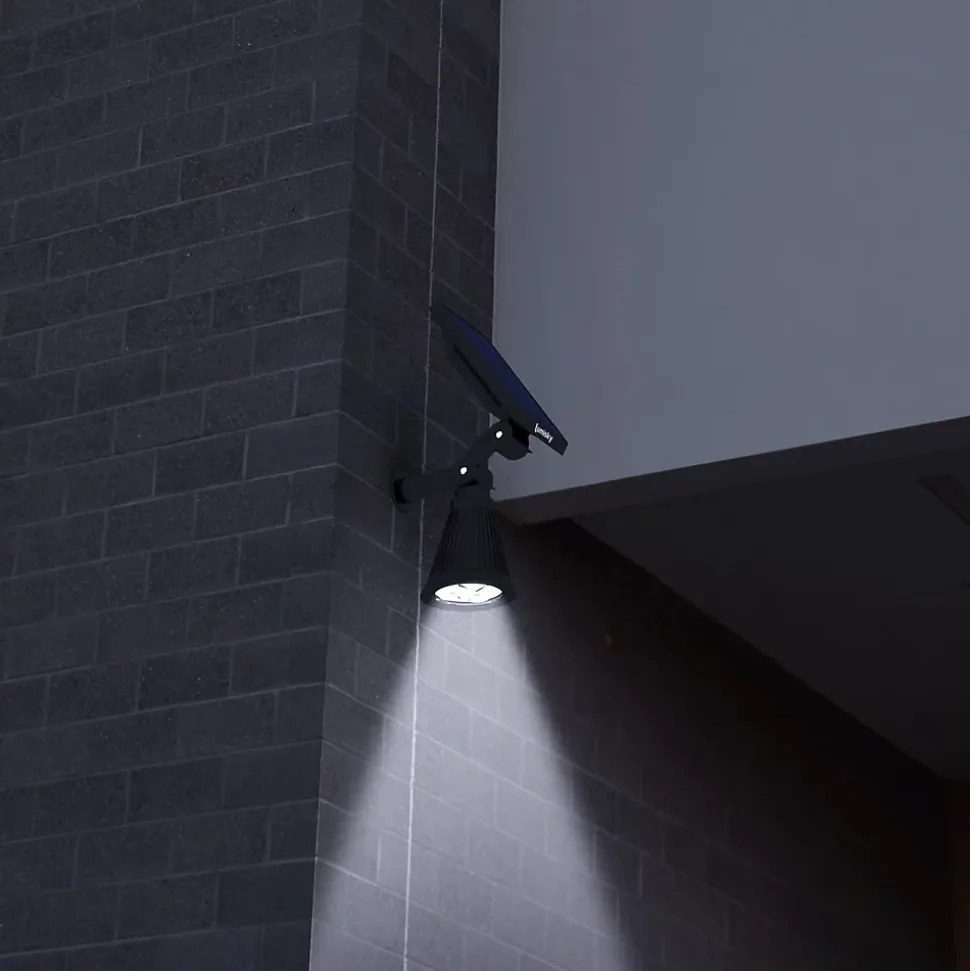 - Projecteur solaire étanche LUMISKY avec 4 LEDs blanches délivrant 200 lm pour éclairage d’accentuation extérieur.