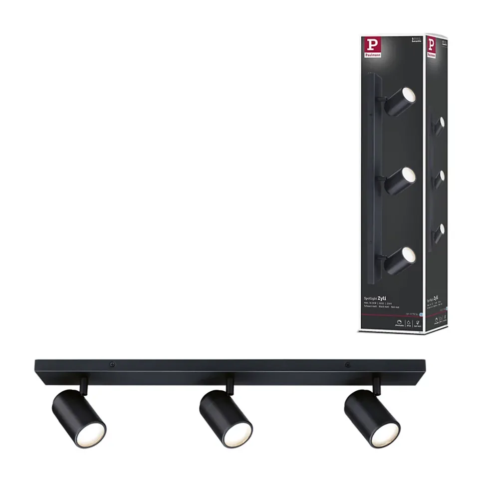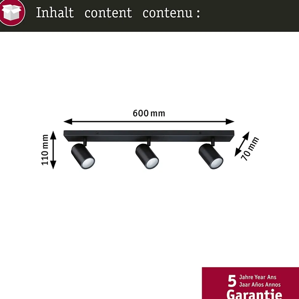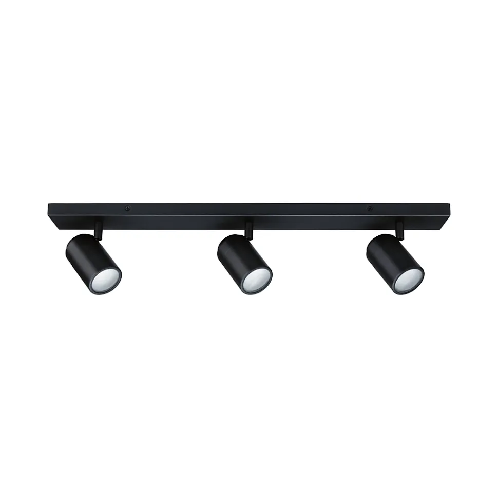 Avec son design sobre, le spot à trois flammes de la série Zyli en Noir mat s’intègre parfaitement comme réglette dans tous les intérieurs. Grâce à la protection anti-projections d’eau, le montage dans des pièces humides ne pose aucun problème. L’ampoule est au choix. Les réflecteurs à culot GU10 d’une puissance jusqu’à 10 watts conviennent parfaitement. Un ciblage facile en fonction de vos besoins de lumière grâce à des têtes de spot orientables. Selon l’ampoule utilisée, la lampe est dimmable.