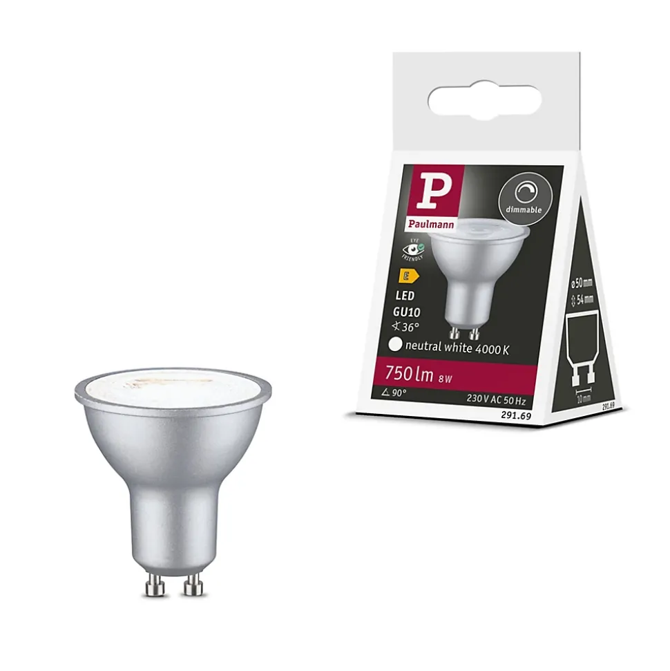 Le réflecteur produit une lumière uniforme agréable qui se distingue par son 4000K. Avec une puissance de 8W et un affichage du flux lumineux de 750lm, il offre une solution d’éclairage optimale. Le réflecteur GU10 est disponible dans le coloris Chrome mat et s’accorde parfaitement avec les couleurs de matériaux RAL du système URail. Il convient parfaitement pour une utilisation sans les spots URail équipés d’une douille GU10. Grâce à sa fonction de variation d’intensité, l’utilisateur peut adapter la luminosité de l’ampoule selon ses besoins personnels, que ce soit pour un éclairage d’ambiance agréable ou pour un éclairage total de la pièce. Les réflecteurs sont spécialement conçus pour produire une lumière dirigée depuis les luminaires en suspension, les spots et les projecteurs. L’éclairage ciblé intervient notamment pour la mise en valeur des tableaux, des éléments de décoration ou de grandes surfaces murales. En résumé, ces réflecteurs ne proposent pas uniquement une lumière de haute qualité avec une luminosité optimale, ils permettent de plus de varier l’ambiance des pièces avec une mise en valeur ciblée. Les lampes LED Paulmann portant le label Eye friendly produisent une lumière confortable qui préserve les yeux. Que ce soit pour travailler, lire ou se détendre, les lampes contribuent à un meilleur confort visuel.