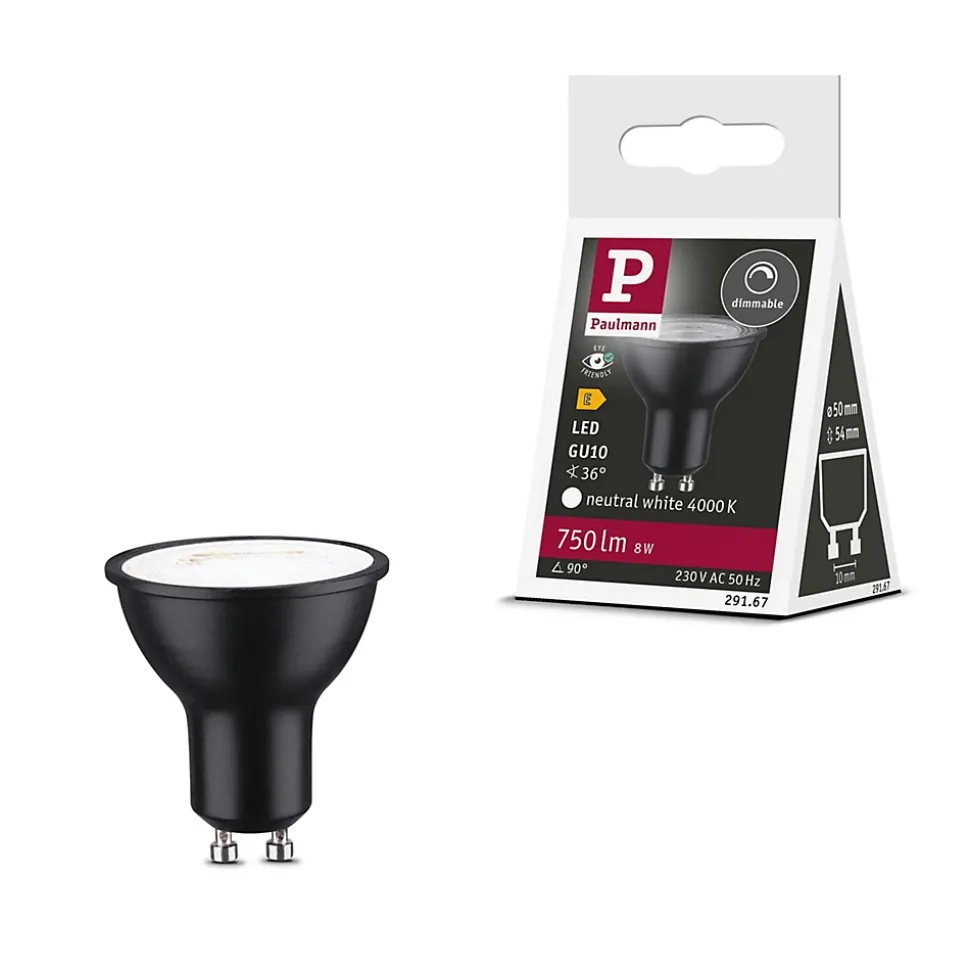 Le réflecteur produit une lumière uniforme agréable qui se distingue par son 4000K. Avec une puissance de 8W et un affichage du flux lumineux de 750lm, il offre une solution d’éclairage optimale. Le réflecteur GU10 est disponible dans le coloris Noir mat et s’accorde parfaitement avec les couleurs de matériaux RAL du système URail. Il convient parfaitement pour une utilisation sans les spots URail équipés d’une douille GU10. Grâce à sa fonction de variation d’intensité, l’utilisateur peut adapter la luminosité de l’ampoule selon ses besoins personnels, que ce soit pour un éclairage d’ambiance agréable ou pour un éclairage total de la pièce. Les réflecteurs sont spécialement conçus pour produire une lumière dirigée depuis les luminaires en suspension, les spots et les projecteurs. L’éclairage ciblé intervient notamment pour la mise en valeur des tableaux, des éléments de décoration ou de grandes surfaces murales. En résumé, ces réflecteurs ne proposent pas uniquement une lumière de haute qualité avec une luminosité optimale, ils permettent de plus de varier l’ambiance des pièces avec une mise en valeur ciblée. Les lampes LED Paulmann portant le label Eye friendly produisent une lumière confortable qui préserve les yeux. Que ce soit pour travailler, lire ou se détendre, les lampes contribuent à un meilleur confort visuel.