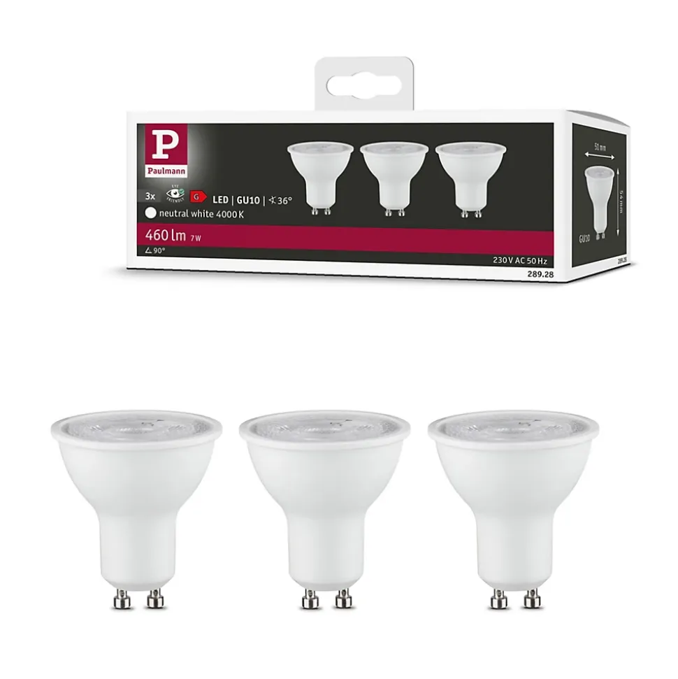 Le réflecteur blanc neutre (lot de 3) avec douille GU10 et 460 lm garantit une lumière dirigée dans les projecteurs, spots et encastrés. Un cône de lumière vous permet de mettre en valeur votre déco ou des objets spécifiques de votre intérieur. Les lampes LED Paulmann portant le label Eye friendly produisent une lumière confortable qui préserve les yeux. Que ce soit pour travailler, lire ou se détendre, les lampes contribuent à un meilleur confort visuel.