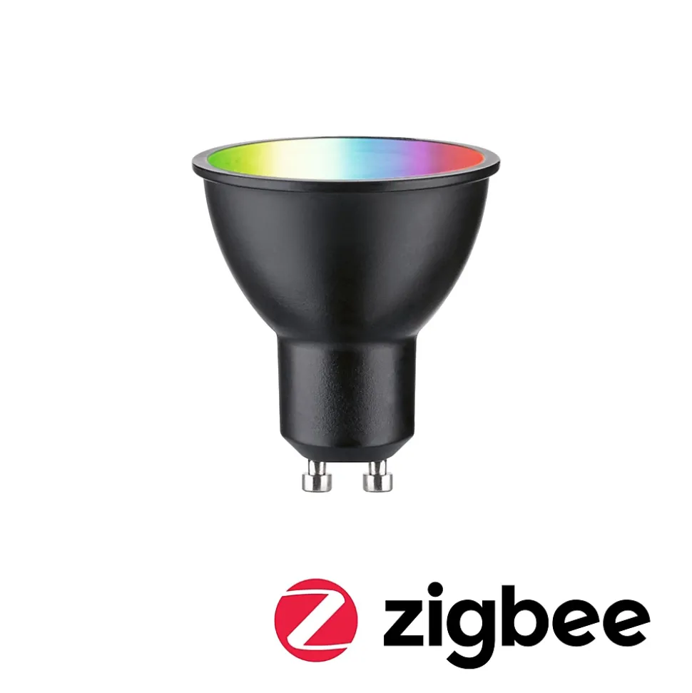 Le réflecteur LED en Noir mat avec RGBW+, une puissance de 4,8W et 350lm crée une lumière uniforme agréable. L’ampoule est compatible avec les douilles conventionnelles GU10 et convient notamment pour les systèmes rails et câbles. L’ampoule est compatible Zigbee 3.0 3.0. ZigBee est un protocole de transmission radio qui met en réseau les appareils de différents fabricants. Selon l’ambiance désirée, vous pouvez choisir entre un blanc chaud véritable, une lumière colorée et d’autres effets différents. Les réflecteurs fournissent une lumière dirigée dans les luminaires en suspension, les spots et les projecteurs. Ils diffusent la lumière uniquement vers l’avant et mettent en valeur la décoration ou les murs entiers par un éclairage ciblé. Les lampes LED Paulmann portant le label Eye friendly produisent une lumière confortable qui préserve les yeux. Que ce soit pour travailler, lire ou se détendre, les lampes contribuent à un meilleur confort visuel.