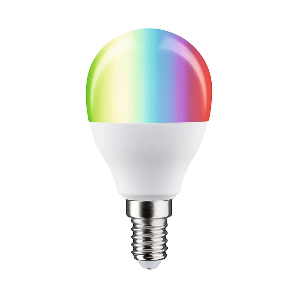 L’ampoule sphérique avec RGBW+, une puissance de 5W et 470lm diffuse un éclairage uniforme agréable. L’ampoule est compatible avec les douilles E14 conventionnelles. L’ampoule est compatible Zigbee 3.0 3.0. ZigBee est un protocole de transmission radio qui met en réseau les appareils de différents fabricants. Selon l’ambiance désirée, vous pouvez choisir entre un blanc chaud véritable, une lumière colorée et d’autres effets différents. Les lampes LED Paulmann portant le label Eye friendly produisent une lumière confortable qui préserve les yeux. Que ce soit pour travailler, lire ou se détendre, les lampes contribuent à un meilleur confort visuel.