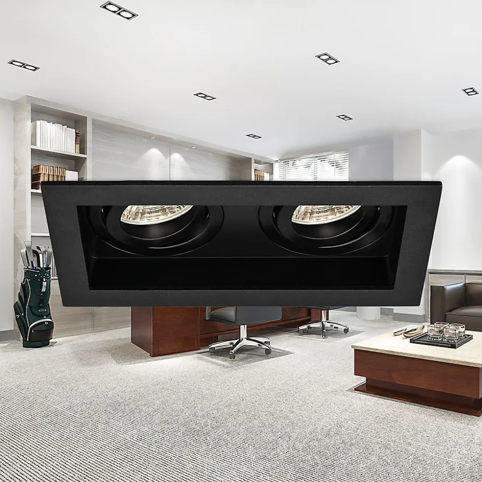 Ce support 2x spots Beta R5 rectangle noir MR16 GU10/GU5.3 se complète avec une ampoule MR16 GU5.3/GU10 et la douille qui correspond. Son corps est en aluminium avec d’excellentes finitions et son design incurvé lui permet de diffuser la lumière sans éblouissement. Pour l’installation, vous devez disposez d’un faux plafond pour pouvoir encastrer le spot et le fondre dans le décor. La pose au plafond est simple et rapide, grâce aux fixations à ressorts. L’ampoule MR16 GU5.3/GU10 s’installe sans l’aide d’aucun outil, car elle se clipse fermement au support. Le support quant a lui est orientable et permet donc de cibler une zone particulière. Nous vous conseillons l’utilisation d’ampoules LED à faible consommation d’énergie. Elles s’adaptent parfaitement aux supports de spots et permettent de réaliser jusqu’à 85% d’économie d’énergie. Elles sont idéales en remplacement des anciennes ampoules halogènes énergivores. L’indice de protection IP20 impose une installation à l’intérieur de l’habitat. Le support 2x spots Beta R5 rectangle noir MR16 GU10/GU5.3, convient aussi parfaitement aux locaux commerciaux comme les magasins, bureaux, restaurants, hôtels.. Ampoules et douilles non incluses. Dimensions : Profondeur : 44mm Longueur/Largeur : 180x100mm