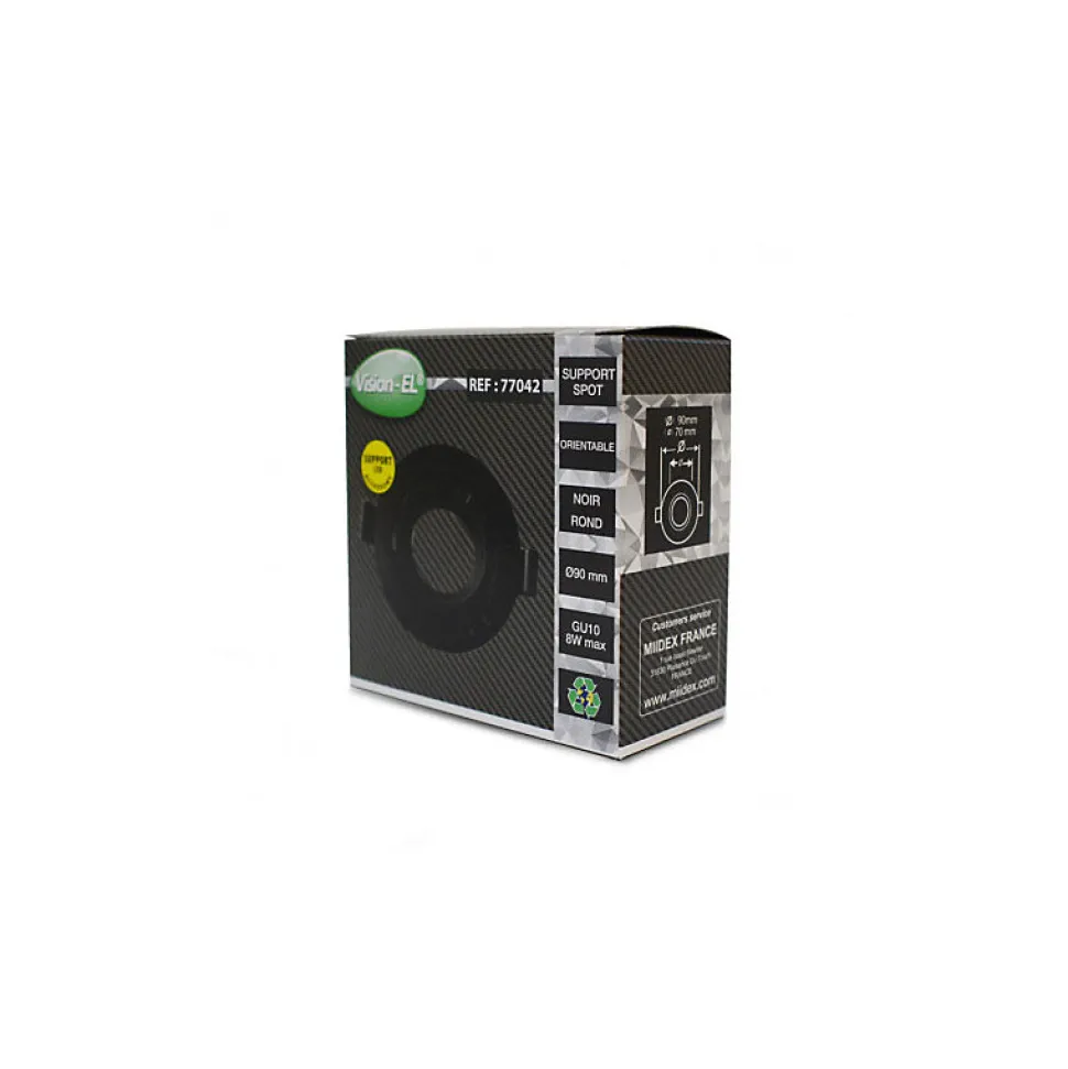[Support Spot Encastrable]: Le Support Spot Encastrable Plafond Rond est un excellent choix pour ceux qui souhaitent un éclairage discret et élégant.[Orientation et forme]: La flexibilité est à l’honneur avec ce support, qui propose une orientation jusqu’à 30°. Sa forme arrondie ajoute une touche de sophistication à tout espace.[Dimensions]: Ce support, avec son diamètre de Ø90 mm et un diamètre de perçage de Ø70 mm, offre une intégration harmonieuse dans une multitude d’espaces pour un éclairage efficace et discret.[Matériaux]: Fabriqué en aluminium de haute qualité, ce Support Spot Encastrable garantit durabilité et résistance, pour une longévité surprenante.[Garantie]: Pour une tranquillité d’esprit totale, ce Support Spot Encastrable Plafond Rond est accompagné d’une garantie solide de 2 ans.: