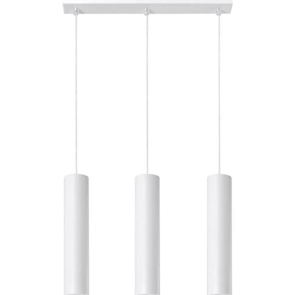 [Suspension 3 Lampes Blanc pour Ampoules GU10] Optez pour un luminaire ultra-tendance avec la Suspension 3 Lampes Blanc pour Ampoules GU10 ! Elle est discrète mais saura faire son effet dans votre intérieur.[Design] La simplicité de cette lampe est aussi ce qui en fait son efficacité. Elle est composée de 3 lampes cylindriques blanches fonctionnant grâce à des ampoules GU10, reliées chacune à un plateau rectangulaire blanc par un câble. Chaque lampe mesure 30cm, chaque câble 60cm et le plateau mesure 45cm de longueur par 5cm de largeur.[Fonctionnement] Vous n’avez besoin que de 3 ampoules GU10 de maximum 12W de puissance chacune pour faire fonctionner votre luminaire ! Une fois branché au courant, il est prêt à illuminer votre pièce ![Important] Ampoules LED GU10 non fournies.[La qualité Silamp] Silamp s’engage pour vous fournir des produits de qualité et garantis 2 ans, ainsi qu’un service client à l’écoute et réactif.- [Suspension 3 Lampes Blanc pour Ampoules GU10] Optez pour un luminaire ultra-tendance avec la Suspension 3 Lampes Blanc pour Ampoules GU10 ! Elle est discrète mais saura faire son effet dans votre intérieur.