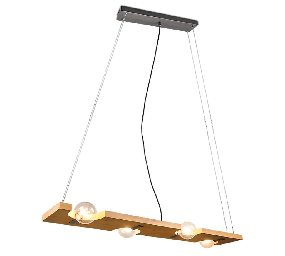Les caractéristiques techniquesLa SuspensionTailor de Trio allie l’élégance du métal nickel antique et la chaleur du bois naturel, créant ainsi un luminaire qui se distingue par son style unique. Avec une hauteur de 150 cm et une largeur de 115 cm, il est parfait pour apporter une touche moderne et chaleureuse à votre intérieur.Ce modèle fonctionne avec 4 ampoules E27 (non incluses), offrant une puissance maximale de 10W par ampoule. Pour une meilleure efficacité énergétique, l’utilisation d’ampoules LED est recommandée, permettant des économies d’énergie allant jusqu’à 80 % par rapport aux lampes halogènes conventionnelles.Un design qui se démarqueLa combinaison de bois naturel et de métal dans un nickel antique crée une ambiance à la fois moderne et chaleureuse, parfaite pour le salon ou la salle à manger. Ce luminaire devient rapidement un élément central de la pièce, attirant les regards grâce à son esthétique raffinée.Durabilité et économies d’énergieLes ampoules LED offrent une longue durée de vie, une faible production de chaleur et une faible consommation énergétique, tout en contribuant à la protection de l’environnement.Avec son design ajustable en hauteur, cette suspension trouve parfaitement sa place au-dessus d’une table à manger ou dans tout autre espace où vous souhaitez apporter une lumière douce et agréable.