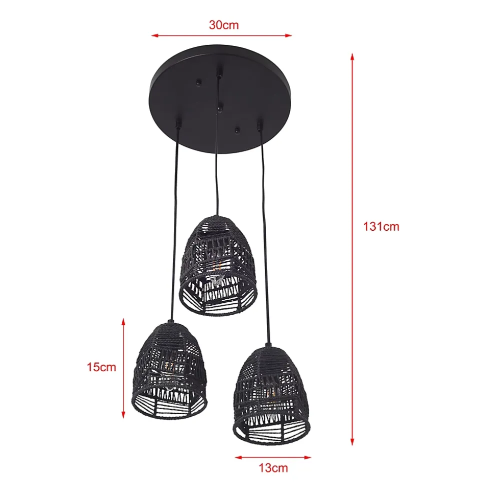 - Compatibilité avec Ampoules E14 : Conçue pour accueillir trois ampoules E14 jusqu’à 40W chacune (non incluses), cette suspension vous permet de choisir l’intensité lumineuse idéale pour créer l’atmosphère parfaite dans votre pièce.