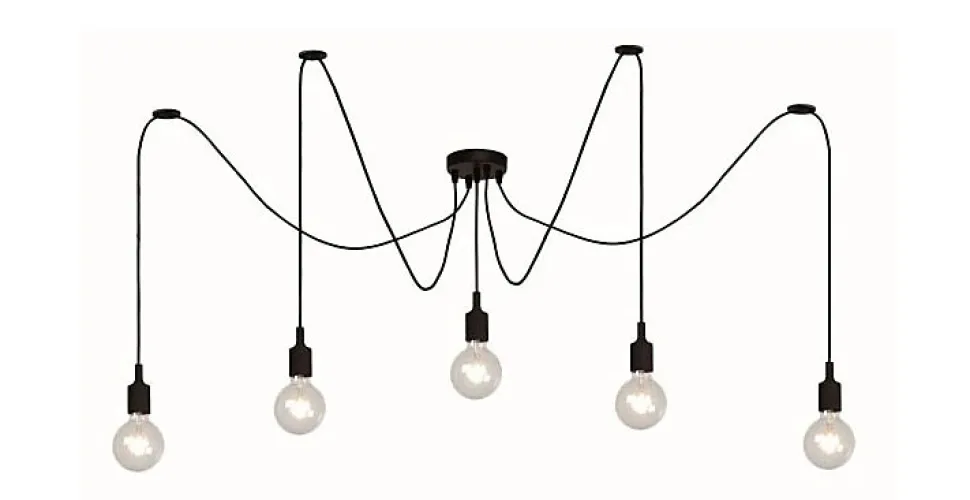 Suspension araignée filaire noir 5 lampes L.80cm E27 Seynave