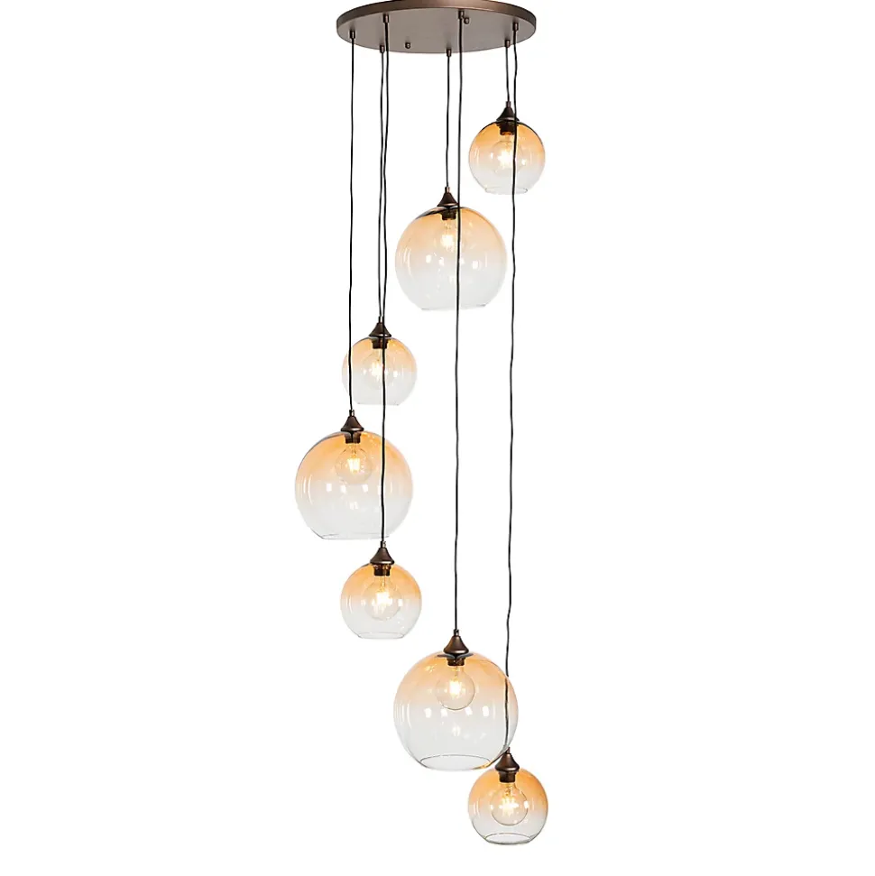 Découvrez la suspension Sandra, une pièce maîtresse incontournable pour tout intérieur Art Déco ! Fabriquée en verre et dotée d’une plaque de montage en bronze, cette lampe avec 7 points lumineux réglables en hauteur respire l’élégance. Les abat-jour en verre de Sandra, enveloppés d’une couleur ambrée, créent un effet d’éclairage chaud et atmosphérique qui transforme votre espace. Avec son diamètre impressionnant de 65 cm et une hauteur maximale de 300 cm, Sandra est idéale pour les pièces aux plafonds hauts. N’oubliez pas d’ajouter les ampoules E27 disponibles séparément pour un résultat optimal. Sandra n’est pas qu’une lampe, c’est une déclaration qui élève votre intérieur à un niveau supérieur !