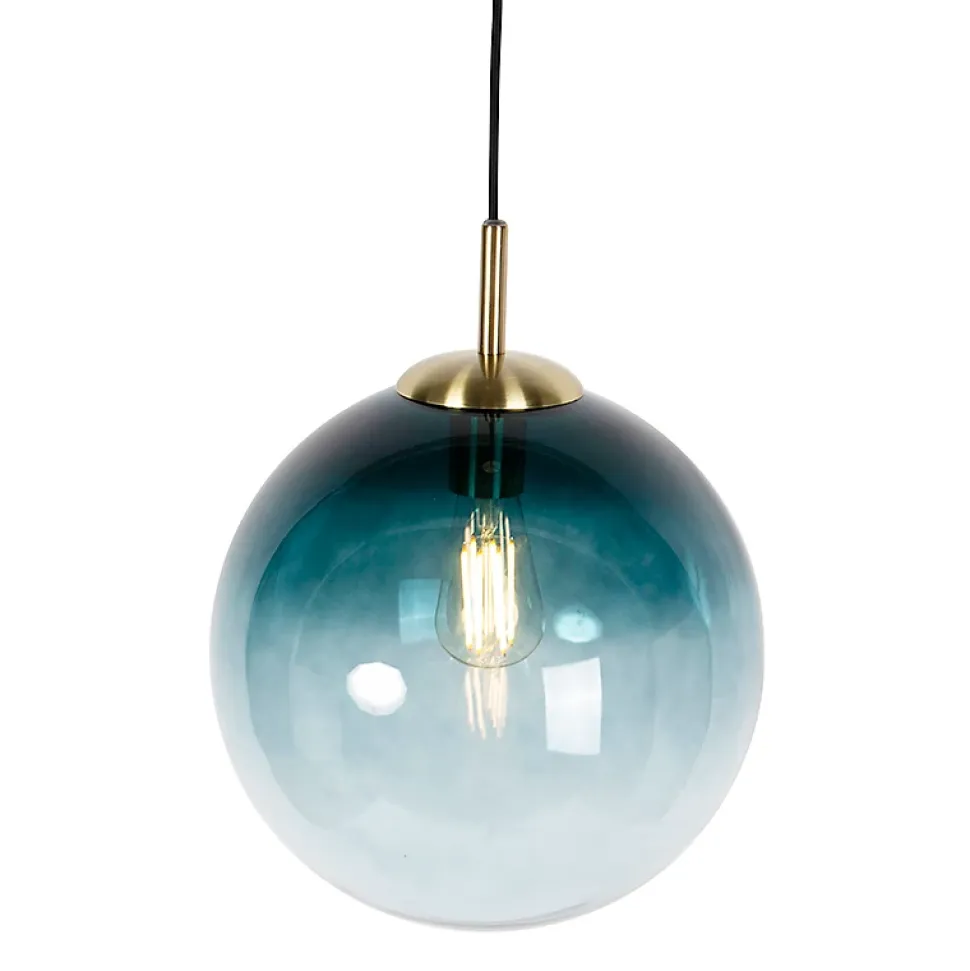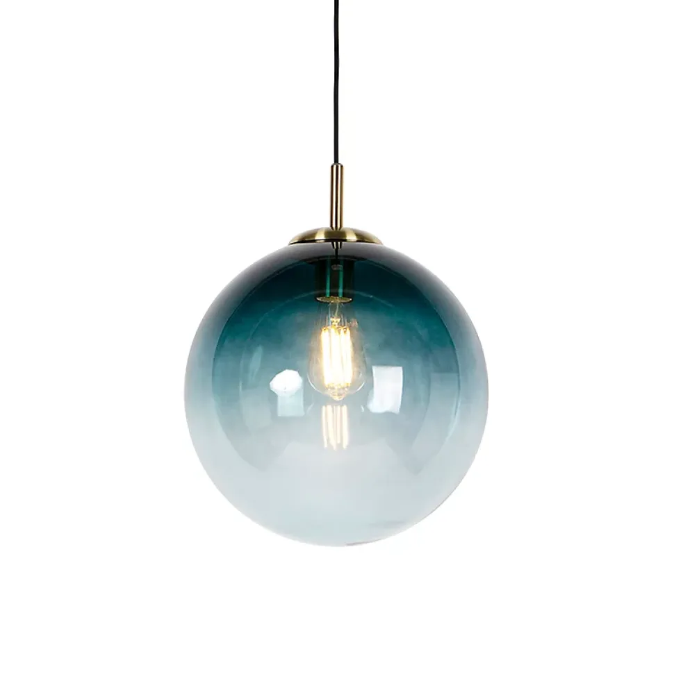 La suspension Pallon est un véritable bijou. La combinaison du laiton et de la couleur bleu océan est très élégante et donnera un look unique à votre salon. Elle mesure 120 cm de long. Le globe en verre a un diamètre de 33 cm. Cette taille lui permettra de s’intégrer parfaitement à votre couloir. La plaque de montage a un diamètre de 10 cm. Vous pouvez compléter la lampe en y ajoutant une ampoule décorative qui s’adapte à un culot E27 (25W maximum). L’ampoule n’est pas incluse et devra être commandée séparément. Vous souhaitez une ambiance encore plus cosy en soirée ? Vous pouvez facilement atténuer la lumière de cette lampe avec un variateur externe ! La Pallon est parfaite pour un intérieur Art Déco ou romantique.