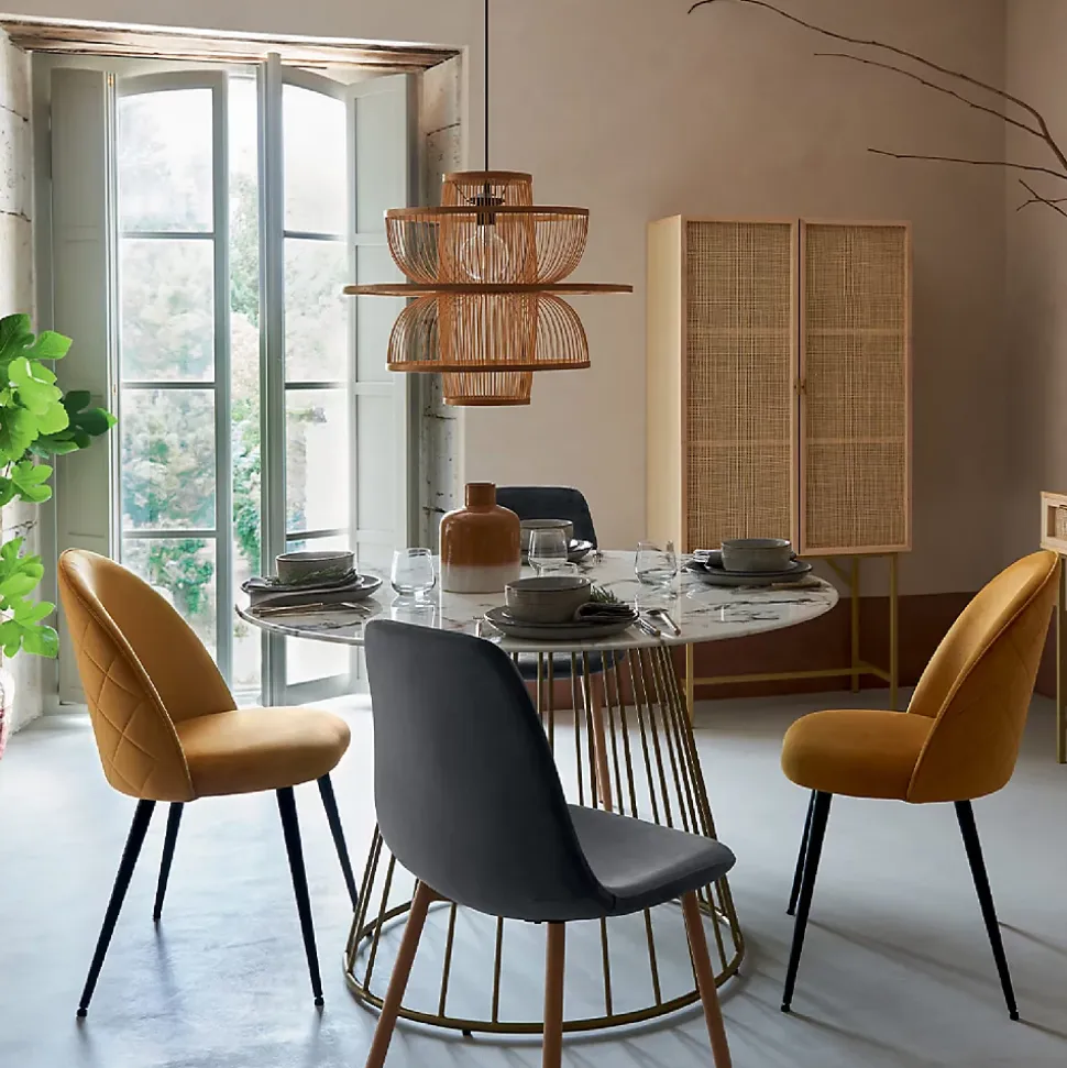 Apportez une touche naturelle avec cette suspension géométrique Ava en bambou de la marque Atmosphera. Idéale dans une chambre pour diffuser une lumière douce. Câble : 100 cm ajustable. Fonctionne avec une ampoule douille E27 puissance max 40W non incluse. Dimensions : D. 58 x H. 45 cm. Poids : 1,05 kg. Matière : Fer et bambou. Marque : Atmosphera.