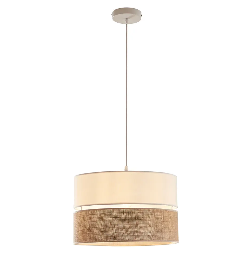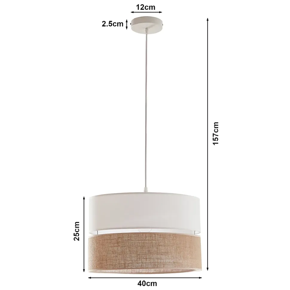 SuspensionLa suspension séduit par son design unique et élégant et s’intègre parfaitement dans n’importe quel environnement de vie ou de travail. Elle s’harmonise avec différents styles d’intérieur, du moderne au classique.Le matériel de montage nécessaire est inclus dans la livraison, vous permettant de le fixer rapidement au plafond. Son assemblage simple vous permet d’éclairer aisément votre espace de vie.La suspension est dotée de 2 abat-jour ronds superposés qui complètent avec raffinement l’ensemble du design. La douille maintient l’ampoule en place et garantit un fonctionnement fiable.Points forts du produit :- suspension moderne pour l’intérieur- design harmonieux pour le salon, la chambre ou le bureau- effet lumineux agréable grâce au double abat-jour- installation sans effort grâce aux accessoires fournis- douille robuste pour un éclairage stable et sécuriséCaractéristiques techniques :- douille : 1 x E27, max. 60 W- tension : 230 V, 50 Hz- type de protection : classe IDimensions :- hauteur totale : 157 cm- double abat-jour (h x Ø) : 25 x 40 cm- fixation au plafond (h x Ø) : 2,5 x 12 cmMatière :- fixation au plafond : métal- double abat-jour : tissu (100 % polyester)Couleur :- fixation au plafond : blanc- abat-jour supérieur : blanc- abat-jour inférieur : effet linContenu de la livraison :1 x suspension (ampoules non fournies)Produit de la marque :lux.pro