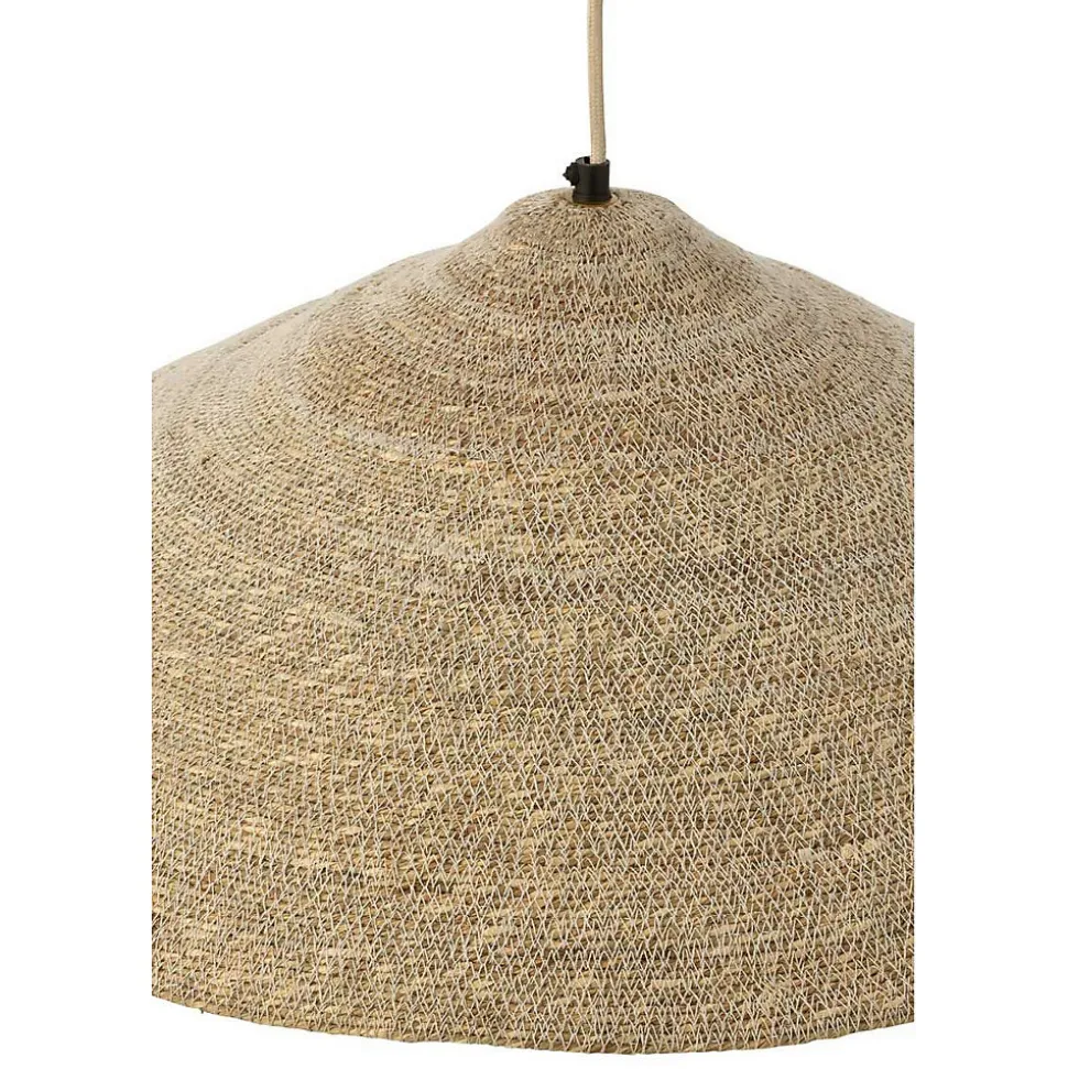 Luminaire vendu électrifié naturel avec monture E27 + cordon Une forme de chapeau chinois pour cette magnifique suspension en jonc de mer naturelle renforcée par une armature métallique que l’on adore. Cet abat-jour sera parfait dans un salon, au dessus d’une table de repas ou encore dans une chambre. Ce luminaire est livré complètement électrifié E27 (monture cordon tissus beige + plafonnier métal écru) – Taille : D. 60 cm et hauteur 20 cm. Découvrez le reste de la gamme suspension naturelles >> tous nos lustres en bois