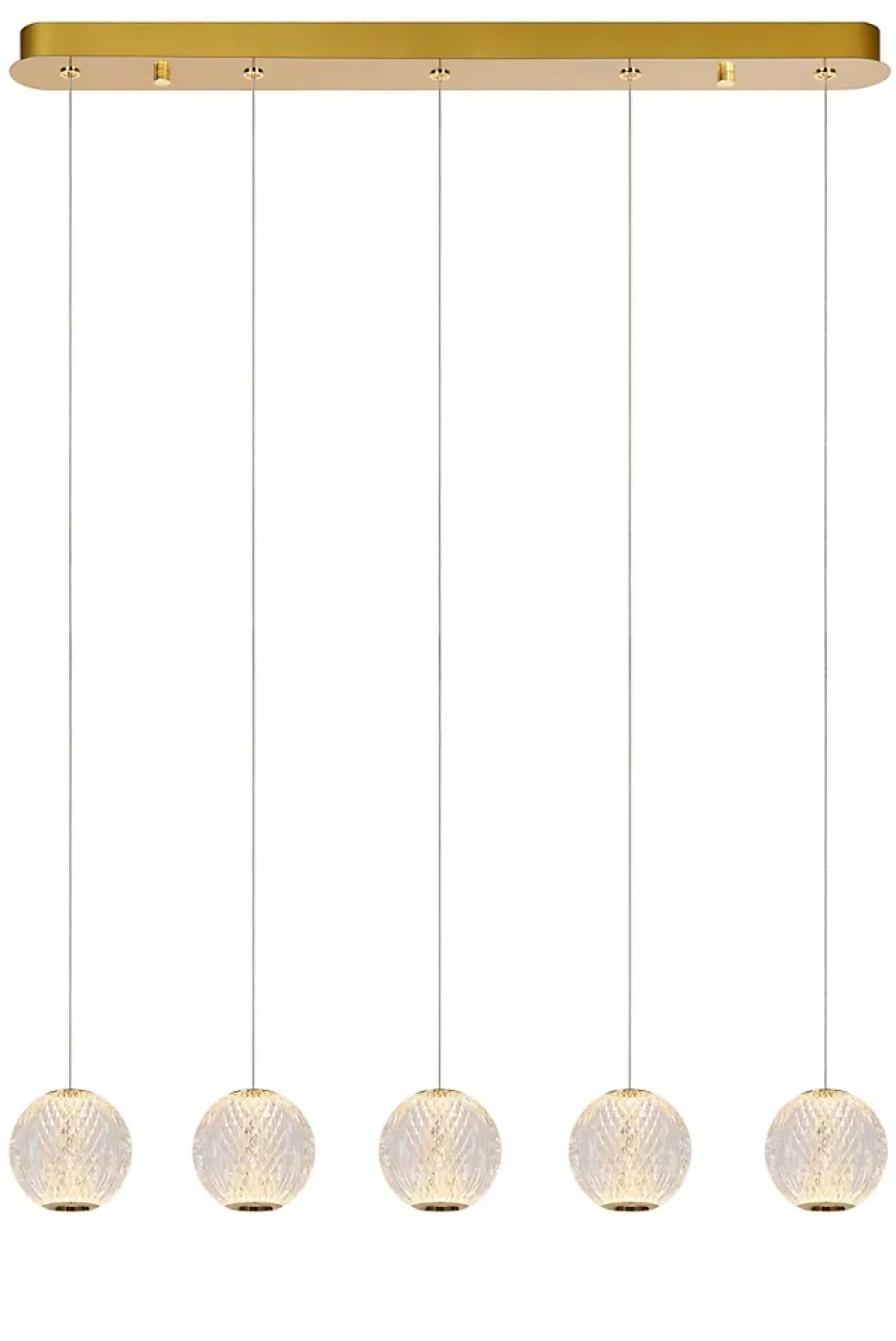 Laissez-vous séduire par les suspensions de Cintra en 1 ligne épurée. Avec leurs rainures typiques, les abat-jours sphériques en acrylique transparent rappellent le cristal. Un véritable accroche-regard au-dessus de la table à manger ou dans votre salon. Cette lampe suspendue est réglable en hauteur et avec ses dimensions de 11 x 11 x 9,8 centimètres, les abat-jours transparents s’intègrent parfaitement dans votre espace. Les détails en laiton complètent le tableau. L’ampoule LED intégrée à intensité variable constitue un atout supplémentaire de cette source de lumière étincelante.Caractéristiques uniques:• Équipé d’une lampe LED intégrée à intensité variable• Dispose d’une lumière blanche chaude (2700K)• Cette lampe est ajustable en hauteur• Facile à connecter à un variateur (non fourni)• Fabriqué en acryliquePrincipales caractéristiques du produit:• Consommation énergétique: 5×4,7W / 230V / A intensité variable (Ampoules incluses)• Dimensions: Lon.84 x Larg.11 x Haut.150 cm• 3 Ans garantie sur le luminairePourquoi choisir l’éclairage Lucide?Lucide incarne un design innovant, un savoir-faire artisanal et une fiabilité exemplaire. En tant qu’entreprise familiale belge avec plus de trois décennies d’expertise, nous concevons des éclairages de haute qualité qui enrichissent et transforment chaque espace, tant intérieur qu’extérieur. Notre collection polyvalente comprend des luminaires durables et des sources lumineuses économes en énergie, soigneusement conçus par nos propres experts et fabriqués selon les normes CE les plus strictes. Grâce à notre large gamme, nous vous proposons toujours une solution d’éclairage adaptée, quel que soit le style ou l’espace. Ainsi, nous illuminons non seulement votre espace de vie mais aussi votre processus de choix dans la recherche d’un éclairage de qualité et abordable. Chez Lucide, nous combinons innovation et savoir-faire pour un éclairage qui …