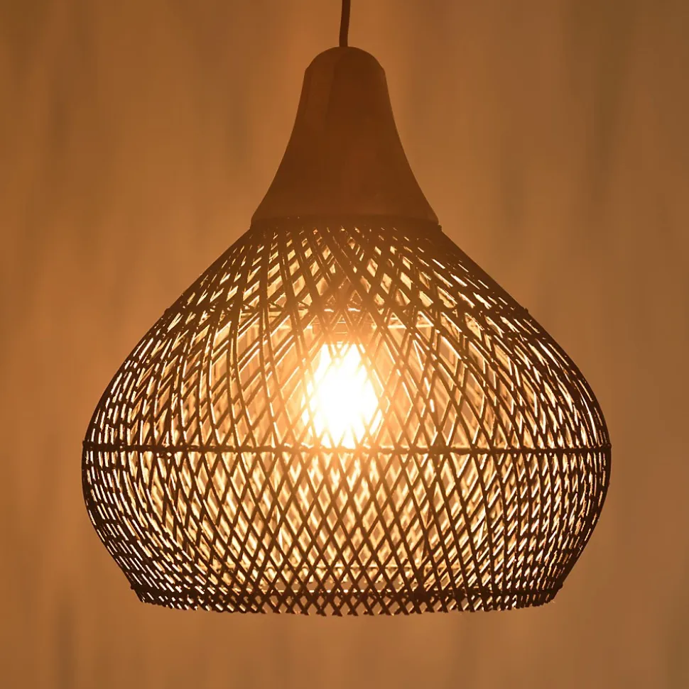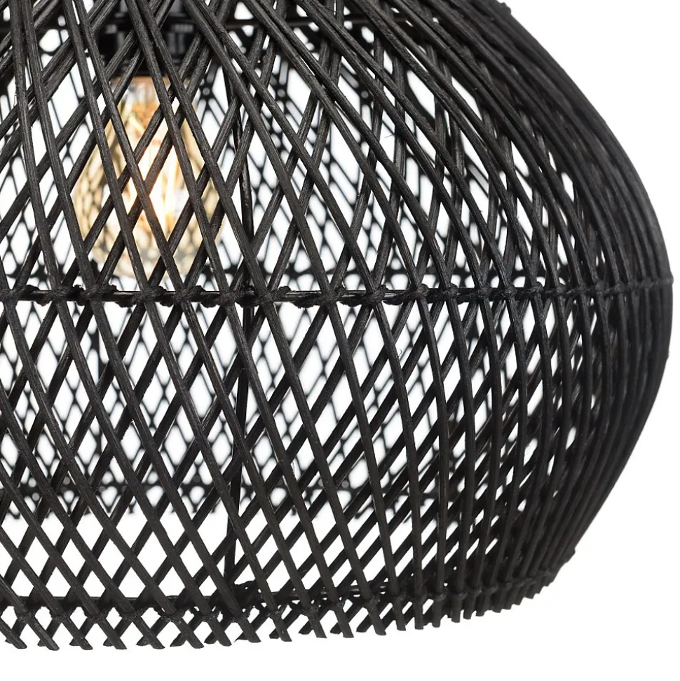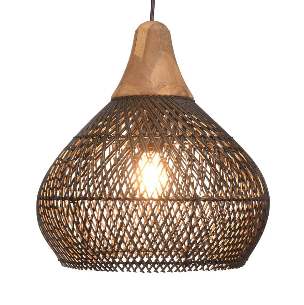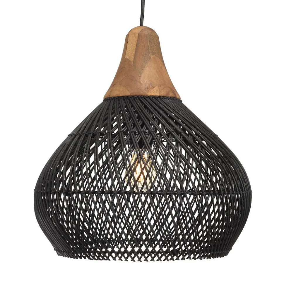 Suspension ‘cloche’ 40x40cm en rotin couleur noire et teck. Article en Rotin/Teck recyclé/Acier. Dimension 40 x 40 x 40 cm.