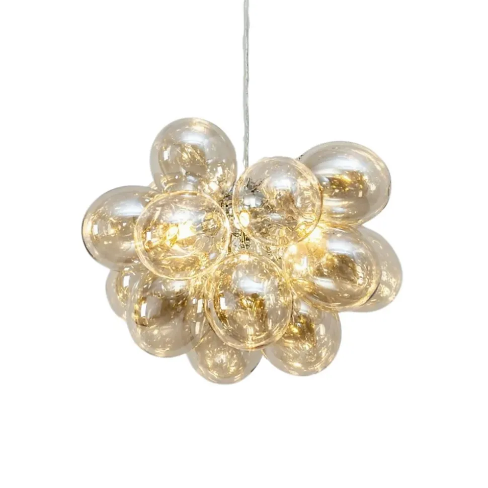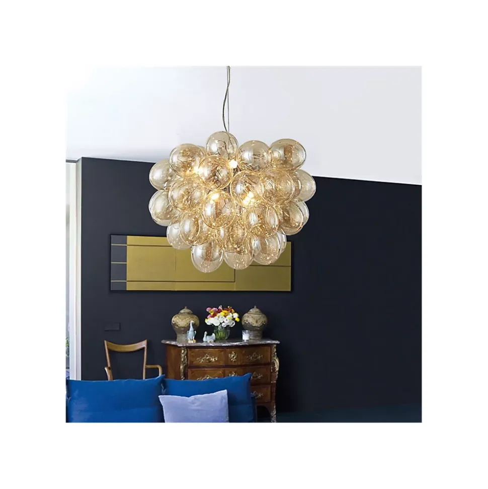 La suspension Bartali, avec ses 17 sphères en verre ambré, est la quintessence du chic et du design pour votre intérieur ! Éclairez votre espace avec style en complétant cette suspension de 3 ampoules G9. Pour une solution d’éclairage économique et écologique, préférez les LED. Ne manquez pas de découvrir également la suspension à 36 sphères de la même collection pour une ambiance cohérente et sophistiquée.