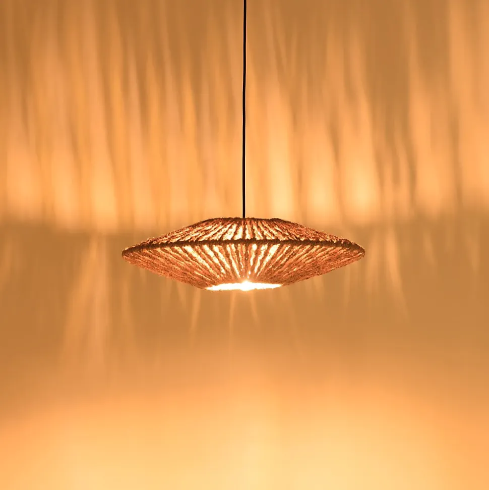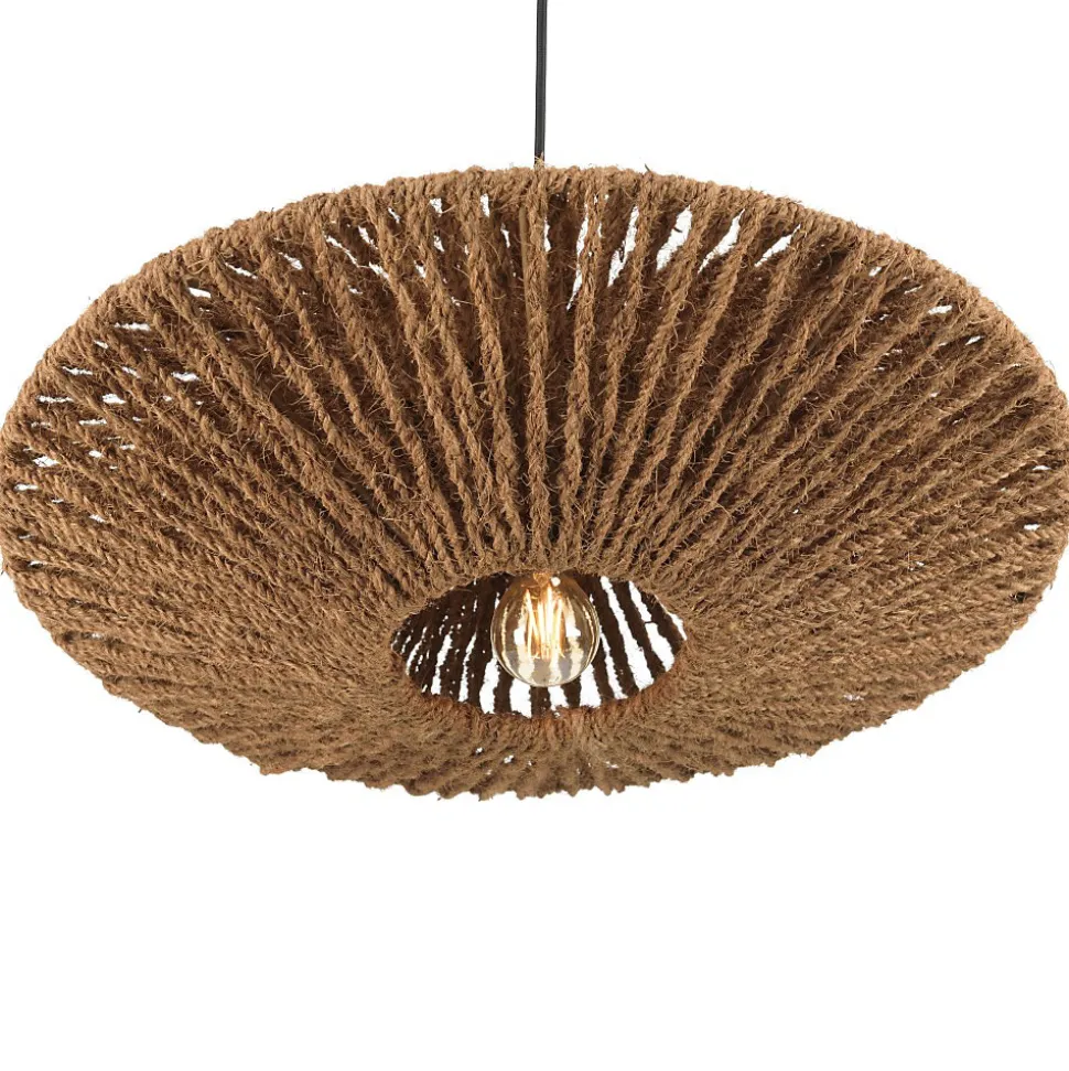 Suspension ‘cymbale’ 60x60cm en fibre de coco et teck recyclé. Article en Fibres de coco/Acier. Dimension 60 x 60 x 17 cm.