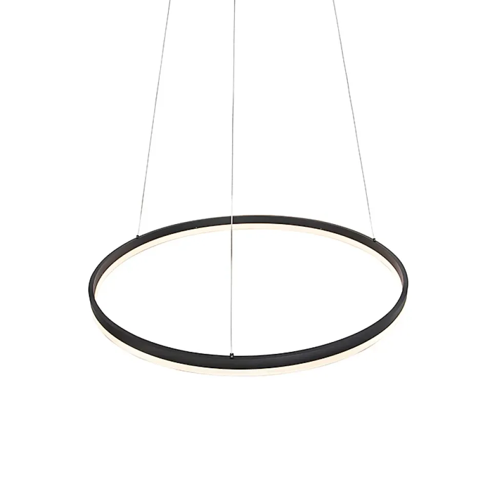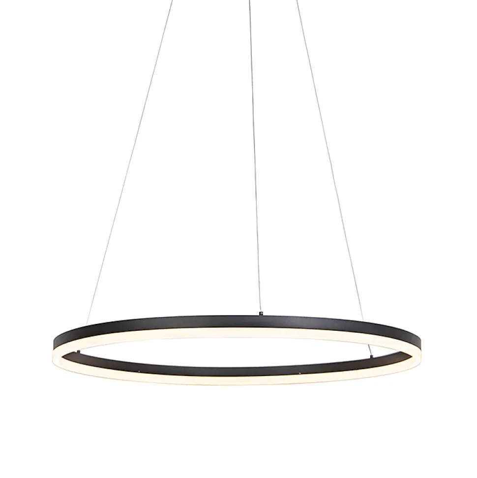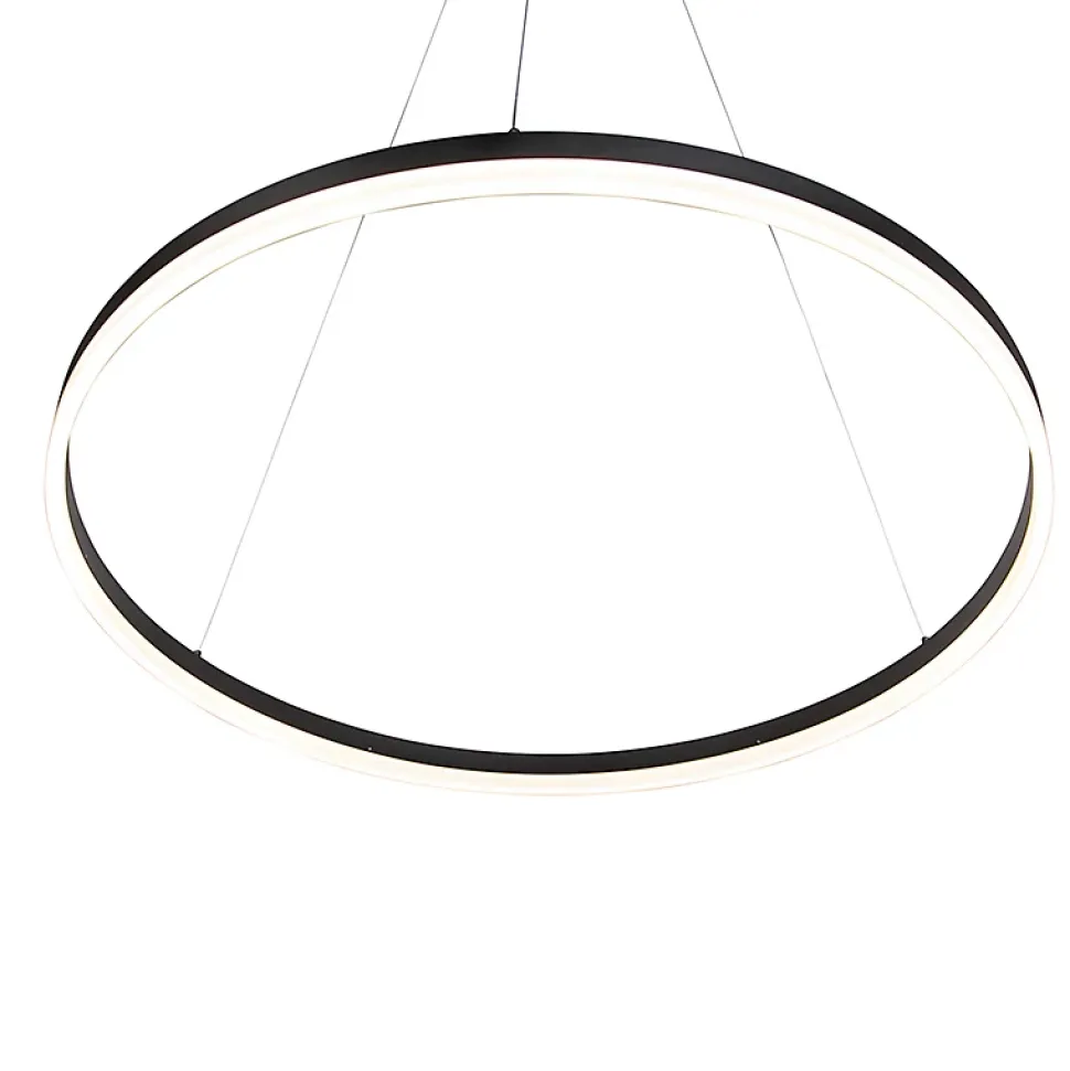 Anello est une suspension élégante et moderne. Le haut de l’anneau est doté d’une élégante finition noire mate, tandis que le bas est constitué d’un anneau LED intégré. L’anneau LED a une puissance de 60W et délivre 6 777 lumens. Cette suspension est dotée d’un système de gradation intégré très particulier. La lampe peut être gradée en trois étapes. Cela signifie que vous pouvez choisir votre propre niveau de gradation. En position 1, la lampe brille à 100 %, en position 2 à 60 %, et la position 3 offre un éclairage super cosy : la lampe ne brille alors qu’à 30 %. Lorsque vous appuyez sur l’interrupteur, la lampe affiche automatiquement sa plage de réglages. Appuyez à nouveau sur l’interrupteur pour sélectionner un réglage d’éclairage ; la lampe s’éteindra alors également. Si vous appuyez à nouveau sur l’interrupteur, la lampe aura le réglage d’éclairage que vous avez sélectionné. Cet anneau a un diamètre de 80 cm et est également disponible en 40 cm et 60 cm. Un joyau moderne pour votre intérieur !