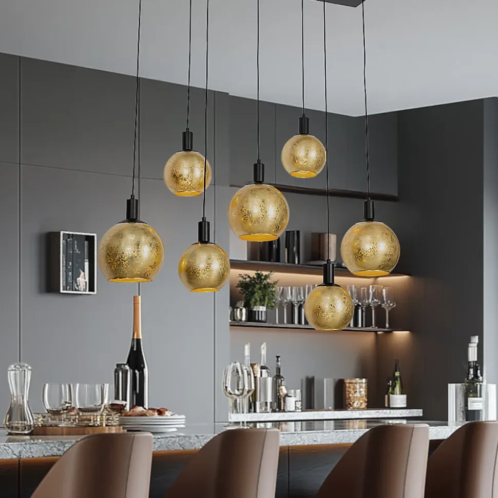 Votre intérieur design a besoin d’un coup de frais ? La suspension Bert est faite pour vous ! Cette suspension est en verre et en acier. Elle est finie en or et en noir. Ses 7 points lumineux en font un véritable attrape-regard. Ses dimensions totales sont les suivantes : hauteur de 156 cm, longueur de 135 cm et largeur de 25 cm. Pratique : Bert est réglable en hauteur, de 54,5 cm minimum à 156 cm maximum. N’oubliez pas de commander des ampoules avec un culot E27 pour compléter la lampe. Bert est dimmable, mais le variateur n’est pas inclus. Vous trouverez forcément une place pour Bert.