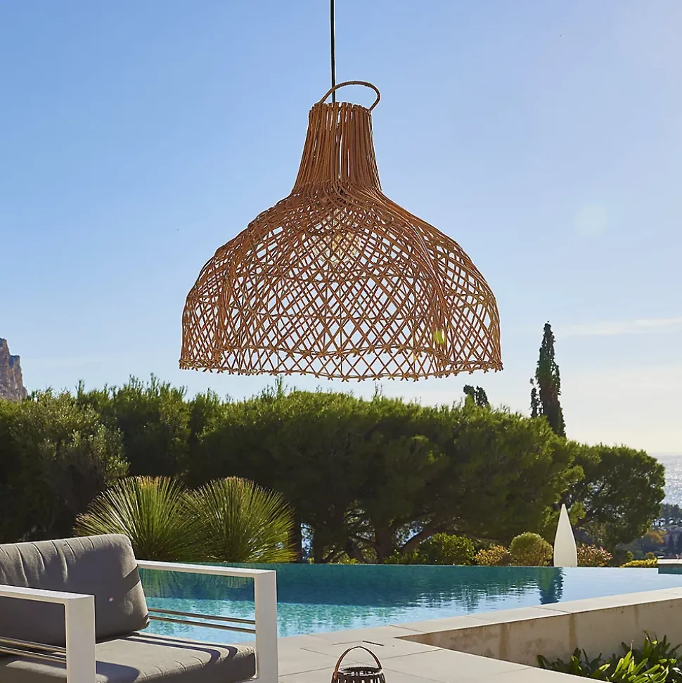 ABAT-JOUR EN ROTIN NATUREL : La suspension ARIA OUTDOOR CABLE, issue de l’artisanat, est fabriquée en rotin naturel. Le rotin est une fibre issue d’un type de palmier. C’est un matériau à la fois souple et rigide qui permet une multitude de forme. Exotique et chaleureuse, elle mettra en lumière un intérieur moderne et va s’adapter parfaitement à un style plus bohème ou vintage grâce à son look ethnique chic. Son tressage unique va sublimer votre espace de vie. Dimensions : Diamètre 60cm x Hauteur 50cm. CÂBLE AVEC DOUILLE E27 : La suspension ARIA OUTDOOR CABLE est équipée d’un câble pour l’extérieur d’une longueur confortable de 5 mètres. Suspendez-la sur une branche d’arbre, sous un parasol ou encore une pergola, pour créer une ambiance lumineuse chaleureuse sur votre terrasse ou dans votre jardin. Branchement sur secteur 220-240V. QUALITÉ : La suspension ARIA OUTDOOR CABLE est un produit de qualité qui répond à toutes les normes Européennes actuellement en vigueur.