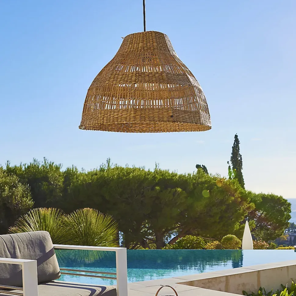 ABAT-JOUR EN HERBE MARINE : La suspension MERIDA OUTDOOR CABLE, issue de l’artisanat, est fabriquée en herbe marine. L’herbe marine est une fibre végétale très résistante. C’est un matériau à la fois souple et rigide qui permet une multitude de formes. Exotique et chaleureuse, elle mettra en lumière un intérieur moderne et va s’adapter parfaitement à un style plus bohème ou vintage grâce à son look ethnique chic. Son tressage unique va sublimer votre espace de vie. Dimensions : 48 x 48 x 34 cmCÂBLE AVEC DOUILLE E27 : La suspension MERIDA OUTDOOR CABLE est équipée d’un câble pour l’extérieur d’une longueur confortable de 5 mètres. Suspendez-la sur une branche d’arbre, sous un parasol ou encore une pergola, pour créer une ambiance lumineuse chaleureuse sur votre terrasse ou dans votre jardin. Branchement sur secteur 220-240V. UTILISATION EXTÉRIEUR : La suspension MERIDA OUTDOOR CABLE est conçue pour une utilisation en extérieur grâce à son indice de protection IP64 qui lui permet d’être protégée contre les projections d’eau de toutes directions.