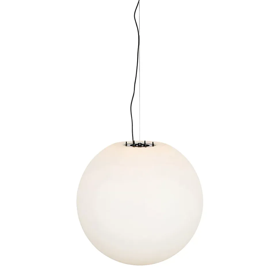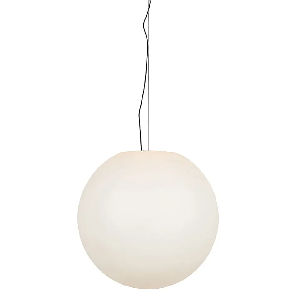 La lampe d’extérieur Nura est l’un de nos best-sellers, et on comprend pourquoi ! Son choix de matière, du plastique blanc, en fait une lampe vraiment moderne. Un bonus supplémentaire : vous pouvez non seulement la suspendre, mais aussi la planter dans le jardin. La lampe a un diamètre de 77 cm et une hauteur de 275 cm. La suspension d’extérieur est dotée d’un culot E27. N’oubliez pas de commander l’ampoule séparément. La suspension d’extérieur a un indice de protection IP65. Cela la rend étanche et adaptée à une utilisation en extérieur. Nura est livrée avec un cordon et une prise. Le cordon mesure 200 cm de long. Créez une ambiance particulière chez vous en atténuant la lumière de la suspension d’extérieur. Nura est dimmable (variateur non inclus). Nura est une vraie gagnante. Créez toujours l’ambiance idéale à l’extérieur avec cette lampe d’extérieur.