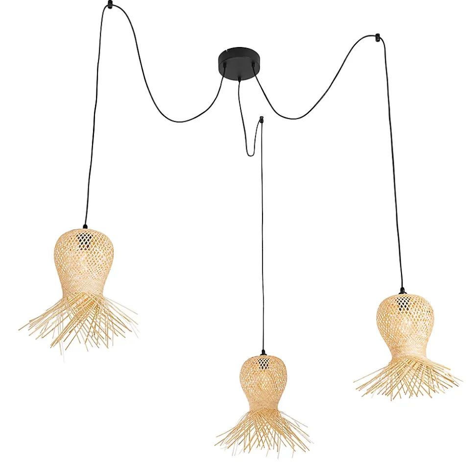 Donnez vie à votre jardin avec Carlos, la suspension d’extérieur en bambou qui enrichit votre espace extérieur d’une touche de naturel. La lampe est soigneusement finie dans une teinte naturelle et est l’ajout parfait au style de vie oriental. Avec pas moins de 3 abat-jours en bambou tressé saisissants, Carlos offre un éclairage idéal. Avec un diamètre généreux de 132 cm et une hauteur maximale de 150 cm, cette suspension d’extérieur est un véritable accroche-regard. Fournissez les douilles E27 avec les ampoules nécessaires, que vous devrez acheter séparément. Grâce à la valeur IP44, Carlos convient aux zones abritées. Optez pour l’élégance intemporelle de Carlos et enrichissez votre espace extérieur de la chaleur du charme oriental, chaque soir de nouveau.