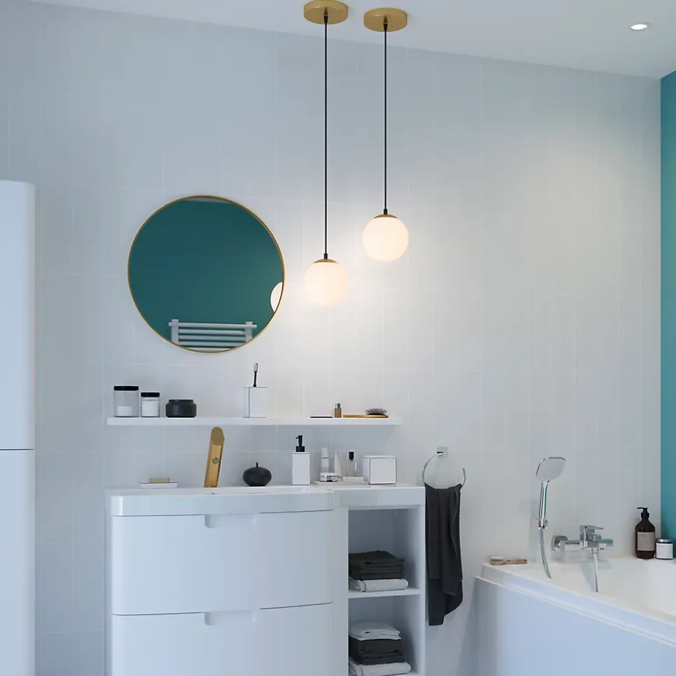 - N’hésitez pas à installer cette suspension de chaque côté du miroir de votre salle de bains pour accentuer votre décoration