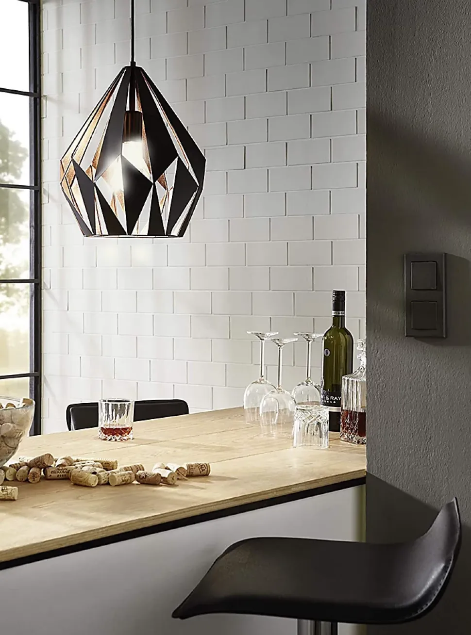 Le luminaire Prinia et son design unique conviendra parfaitement à une salle à manger ou un salon au style contemporain. Pièce maitresse de votre décoration, cette suspension illuminera votre intérieur par ses motifs géométriques modernes et épurés. Existe en blanc et cuivre ou noir et cuivre.