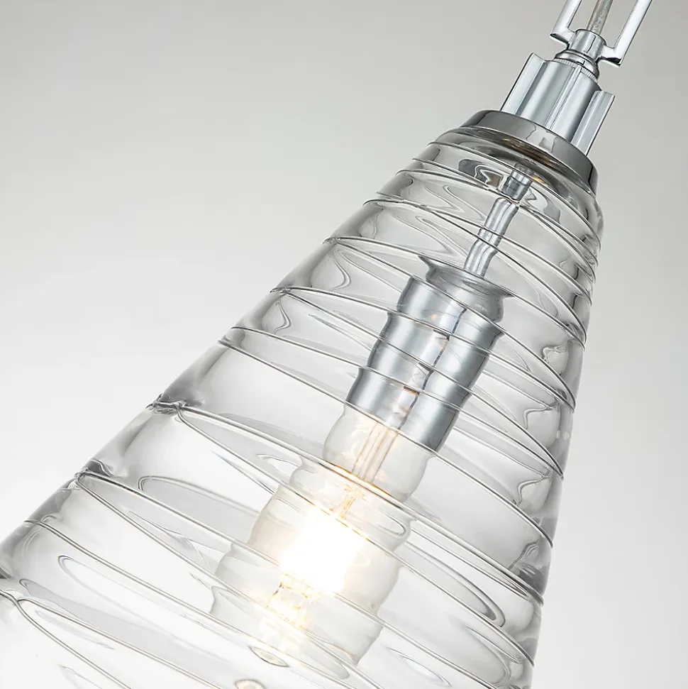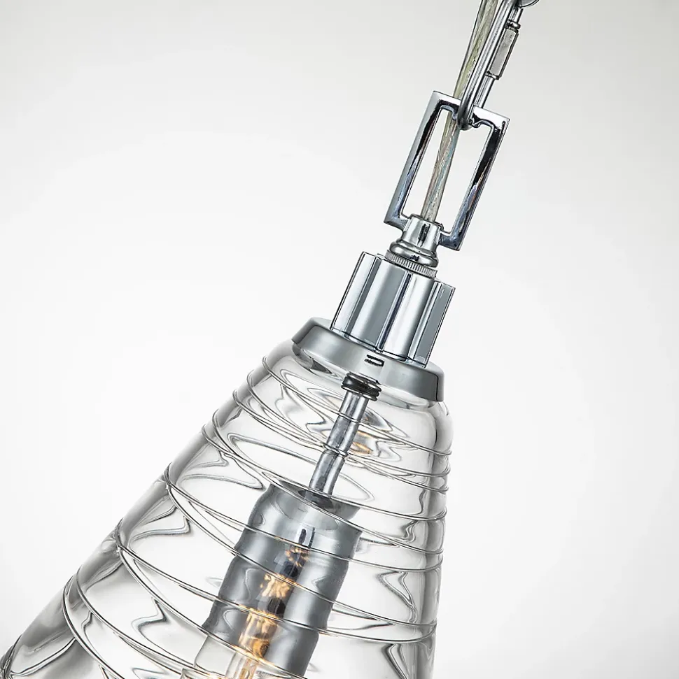 La collection de suspensions Elmore de Feiss présente du verre clair Candy, obtenu grâce à un processus artisanal en plusieurs étapes consistant à enrouler de petites tiges de verre autour de l’abat-jour pour créer une surface texturée et vibrante qui dissimule subtilement la source lumineuse et réfracte la lumière pour créer une merveilleuse étincelle. Ces spectaculaires abat-jour en verre à grande échelle sont disponibles en deux profils classiques, un cône ou un cylindre.