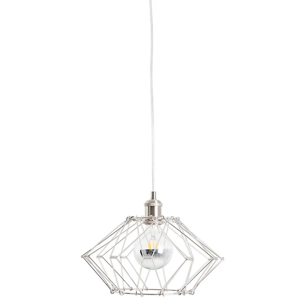 La suspension FYN de notre collection attire tous les regards dans n’importe quelle pièce à vivre. Grâce à leur éclairage direct et ciblé, les suspensions sont idéales pour éclairer les tables à manger, les îlots de cuisine, les espaces de travail ou tout autre endroit nécessitant un éclairage précis. Elles apportent une touche décorative et constituent une source de lumière claire pour différentes tâches. Cette lampe de style industriel séduit par son aspect filigrane et son design anguleux – idéale pour tous ceux qui aiment l’originalité. La lampe en métal argenté attire tous les regards dans chaque pièce. Le support est transparent. La suspension mesure 40 cm de long, 40 cm de large/profondeur et 110 cm de haut. Le luminaire a donc un diamètre de 40 cm. Le câble d’alimentation mesure 100 cm de long et est transparent. Avec cette suspension, vous disposez d’une solution d’éclairage esthétique pour vos pièces à vivre. Équipée d’une douille E27 (à équiper d’ampoules adaptées selon vos souhaits), elle éclaire la pièce de manière attrayante. Vous pouvez remplacer vous-même l’ampoule, ce qui est non seulement pratique, mais permet également de réaliser des économies. Ce luminaire correspond à la classe 2. Cet appareil est prévu pour être branché sur le secteur et fonctionne avec une tension de 220-240 V ~ 50 Hz. Avec une puissance admissible allant jusqu’à 40 watts, ce luminaire est particulièrement performant et efficace. Nos suspensions de haute qualité créent une ambiance lumineuse idéale et apportent confort et style à chaque pièce de votre intérieur.