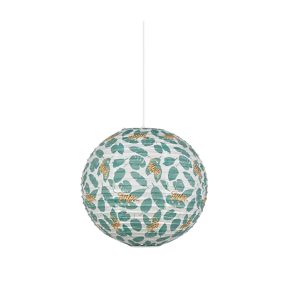 Suspension enfant boule japonaise en papier de riz imprimé tigre E27 60W rose Ø40cm Corep