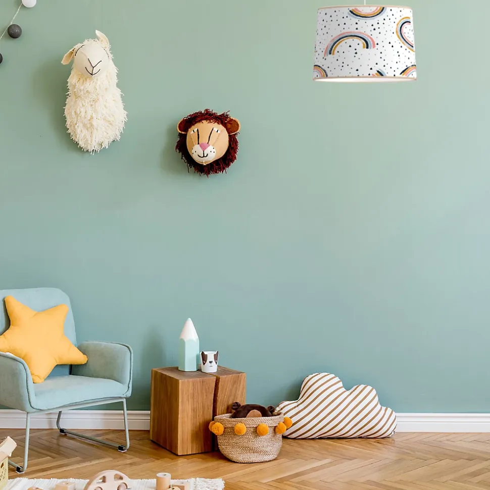 Apportez de la couleur et de la douceur à la chambre de votre enfant avec cette suspension en tissu arc-en-ciel Seynave. Son design joyeux et multicouleur, orné de jolis arcs-en-ciel, crée une ambiance chaleureuse et rassurante, idéale pour un univers enfantin plein de gaieté. Grâce à son abat-jour en textile, la lumière est diffusée de manière douce et homogène, parfaite pour accompagner les moments de jeu, de lecture ou de repos. Avec son style tendance et intemporel, cette suspension décorative pour chambre d’enfant s’intègre facilement à tous les types de décorations, du plus moderne au plus classique. Facile à installer, elle est équipée d’un culot standard E27 (ampoule non incluse) et convient à une puissance maximale de 40W. Son diamètre de 28 cm et sa hauteur réglable en font un luminaire pratique et adaptable