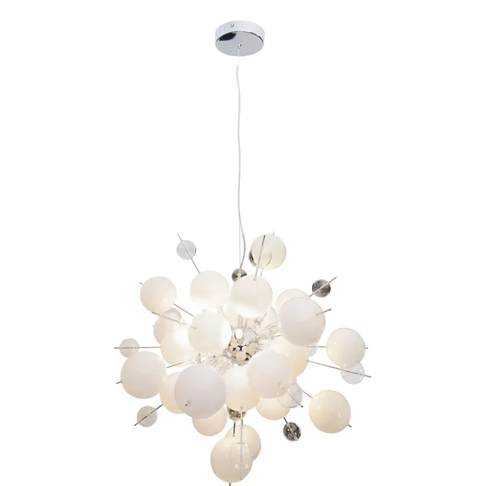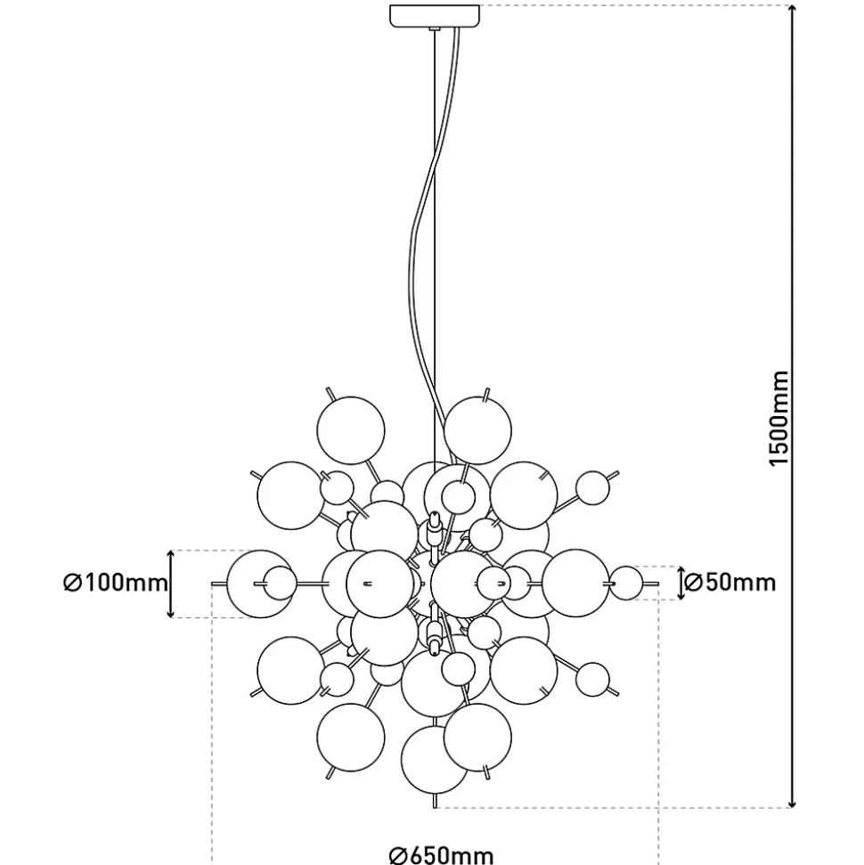 Donnez à votre intérieur ce petit quelque chose en plus avec la suspension EXPLOSION. Les luminaires suspendus vous permettent de créer un éclairage clair et focalisé – un éclairage idéal pour les tables de salle à manger, les îlots de cuisine, les espaces de travail ou toute zone nécessitant une lumière ciblée. Ils aident à mettre en évidence une zone spécifique et créent une source de lumière claire pour les activités. Style moderne, conception sphérique et aspect extravagant, parfait pour ceux qui aiment l’extravagance et la qualité ! Le luminaire en métal et en verre est blanc et attire le regard dans chaque pièce… L’interaction entre la structure chromée et l’abat-jour clair et transparent confère au produit une image d’ensemble cohérente. Les dimensions de la suspension sont de 65 cm de long, 65 cm de large et 193 cm de haut. Le luminaire a donc un diamètre de 65 cm. Vous pouvez régler la longueur de la suspension entre 65 et 193 cm. Avec une longueur de 150 cm du câble d’alimentation clair/transparent, vous disposez d’une grande marge de manœuvre pour placer le luminaire. Donnez à chaque pièce ce petit plus avec cette suspension équipée de 10 culots G3 et pouvant être équipée individuellement des ampoules de votre choix. Vous pouvez changer vous-même l’ampoule. Ce luminaire correspond à la classe 2. Pour le fonctionnement sur secteur de cet appareil, une tension de secteur de 220-240V ~ 50Hz est nécessaire. Le luminaire dispose d’une puissance totale de 280 watts. Créez l’ambiance souhaitée avec notre luminaire suspendu de haute qualité et donnez à votre maison une sensation de confort et de style dans chaque pièce.